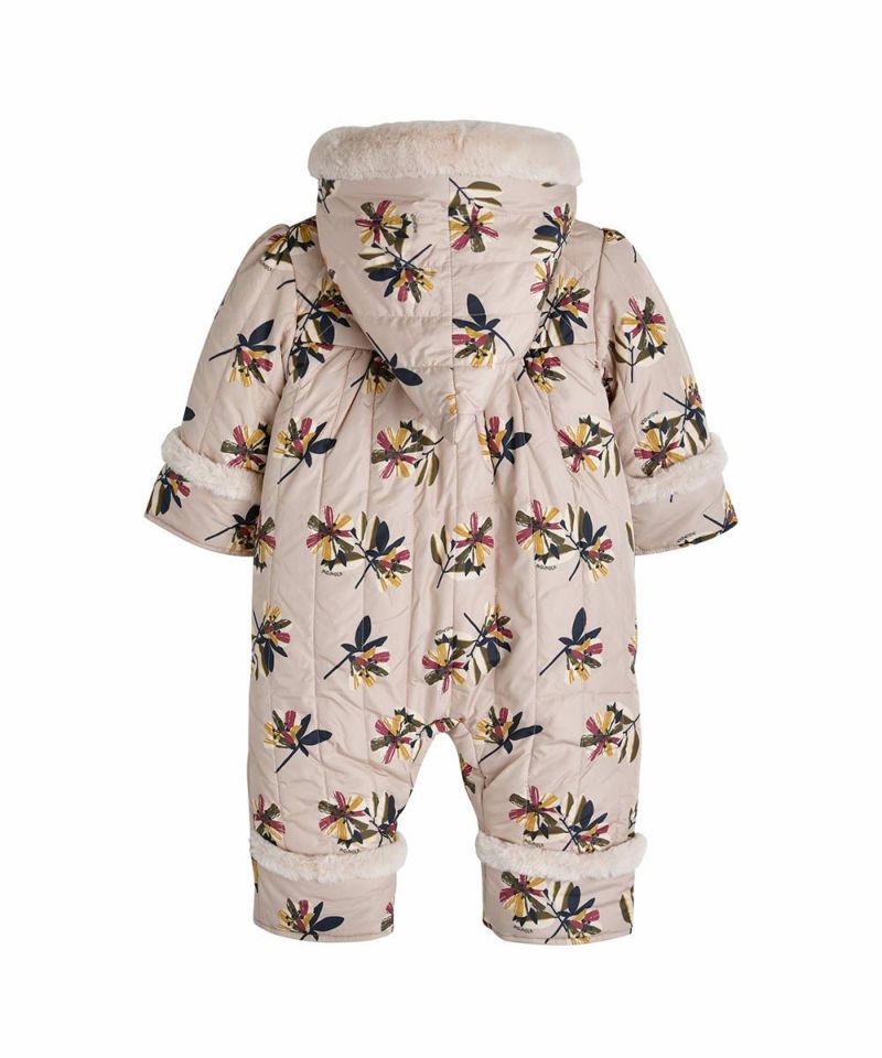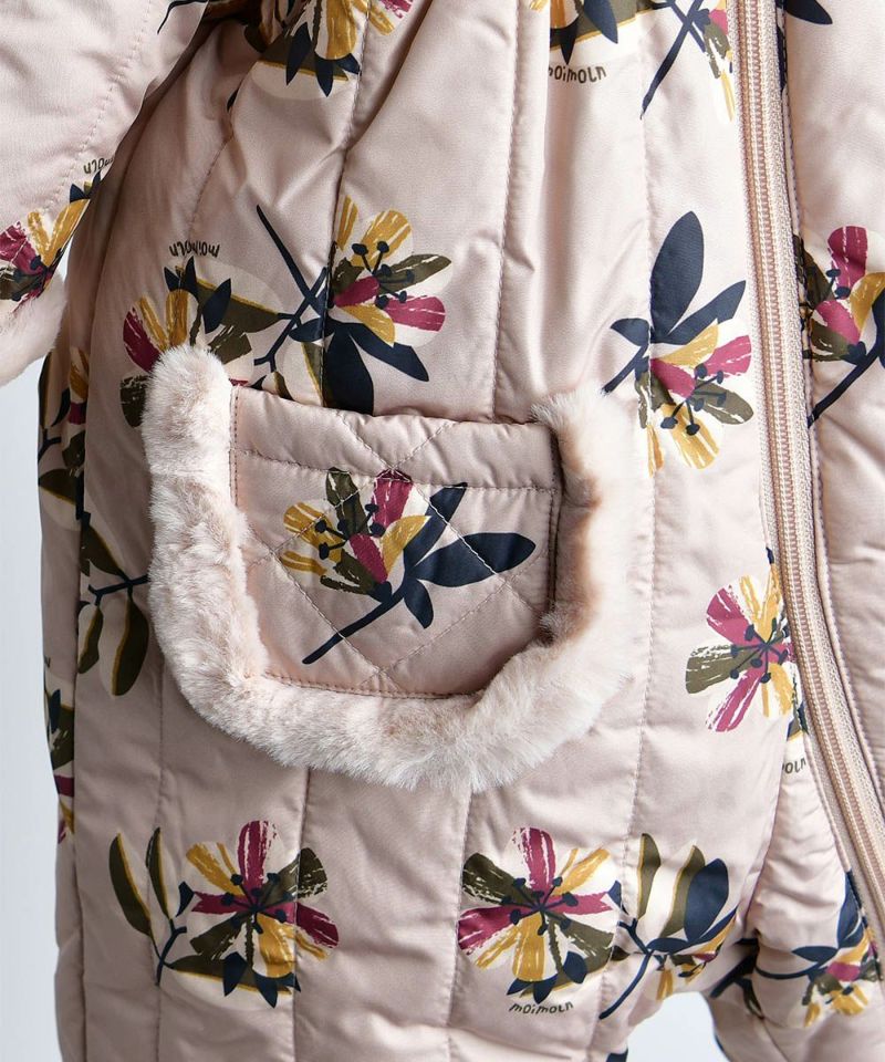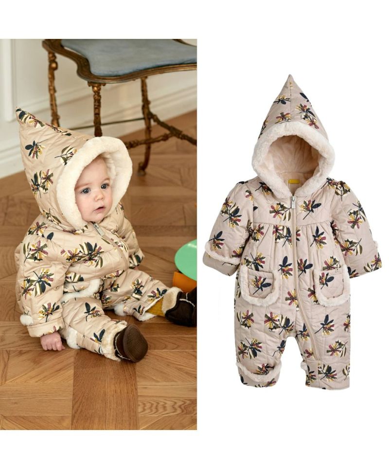 おしゃれで雰囲気のある柄とキルティング、ファートリミング配色がポイントのカバーオール。保温性に優れており、花柄ビックカラーダウン(W234DMB34P)との姉妹ルックがおすすめです。