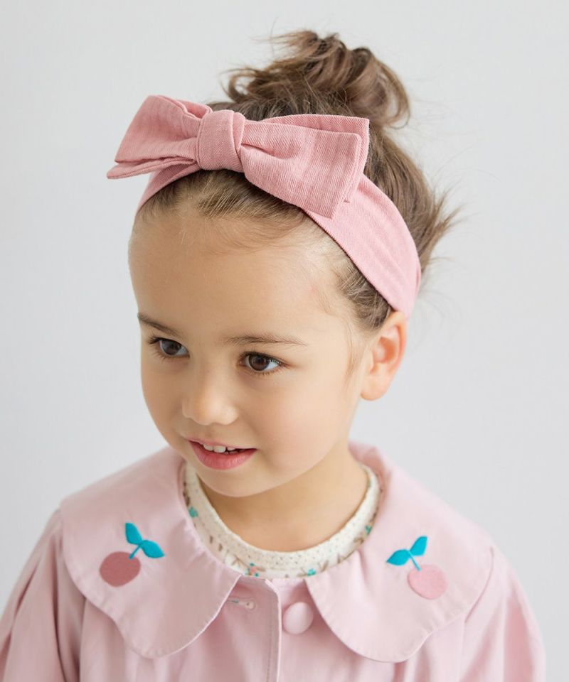 リボンを束ねたようなシルエットが可愛らしくラブリーなムードを演出してくれるヘアバンド。コーディネートにプラスしやすいワントーンで様々なアイテムとの組み合わせもぴったり。コットン100%で大事なお子様の普段使いの着用にも安心。デイリールックはもちろん、特別な日にもぴったりなアイテムです。