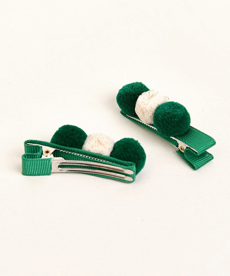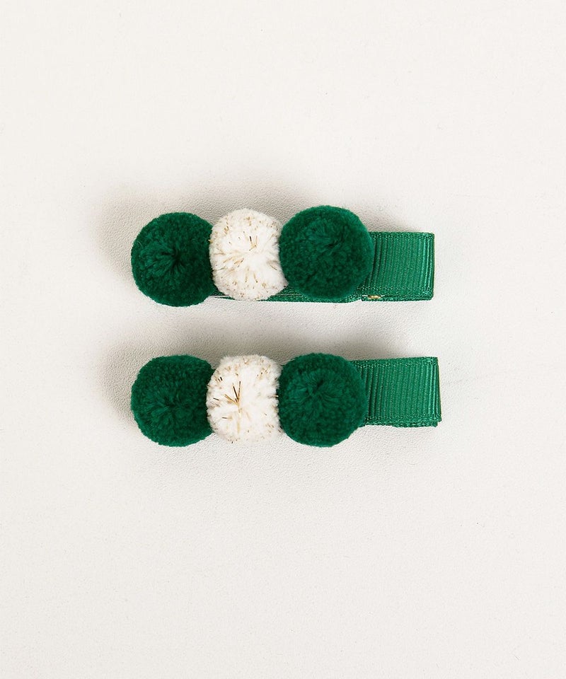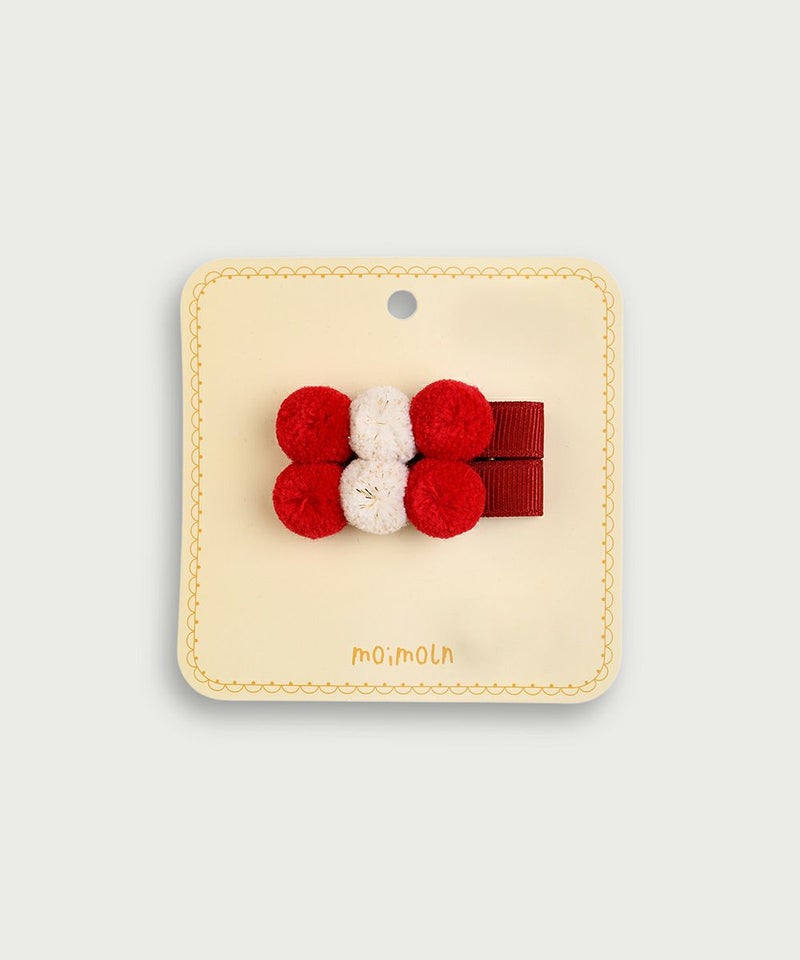 カラフルな毛玉のポンポンを並べたヘアクリップ。クリスマスをはじめ、秋冬シーズンのコーデのアクセントにぴったりな素材感と色使いで、スタイリングを楽しく見せてくれる商品です。