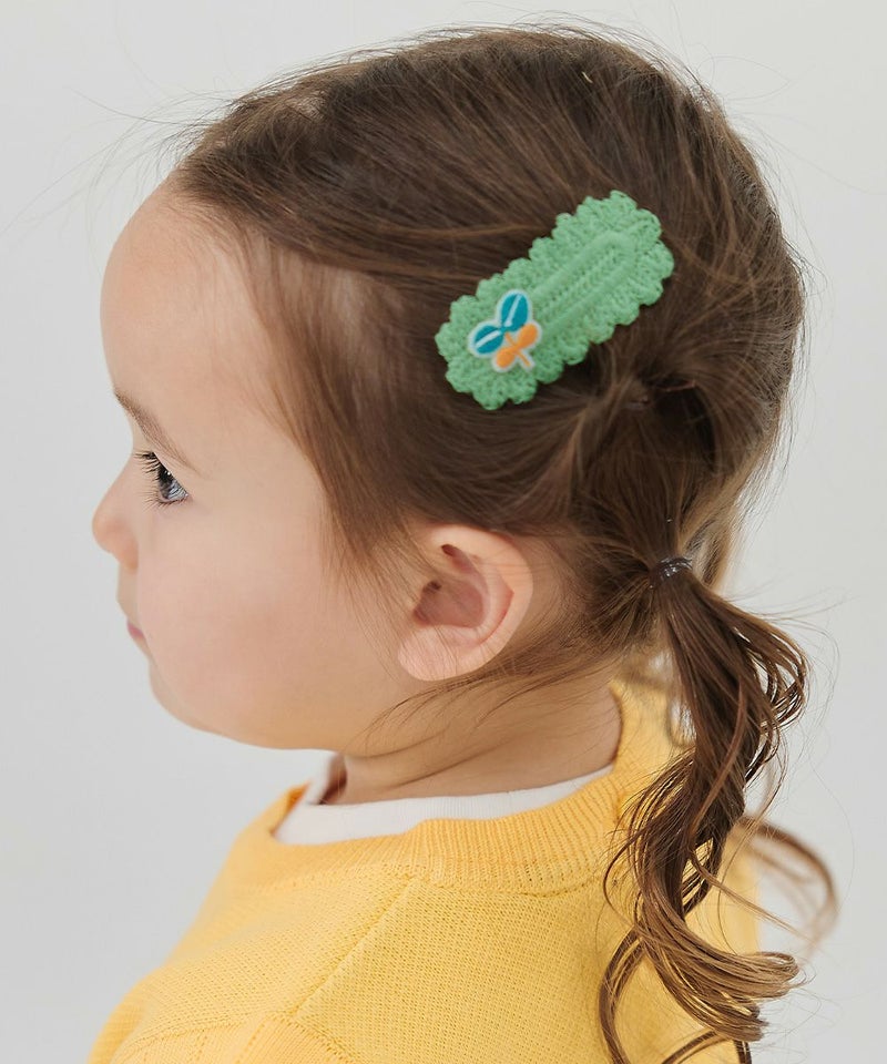 ニット素材のヘアピンが登場!春らしいワッペンがポイント♪コーデのアクセントにピッタリなアイテムです。