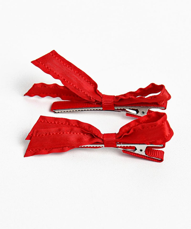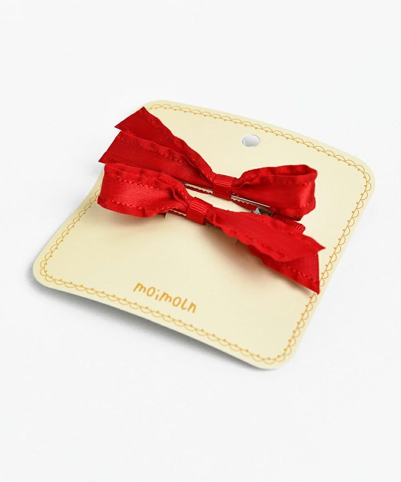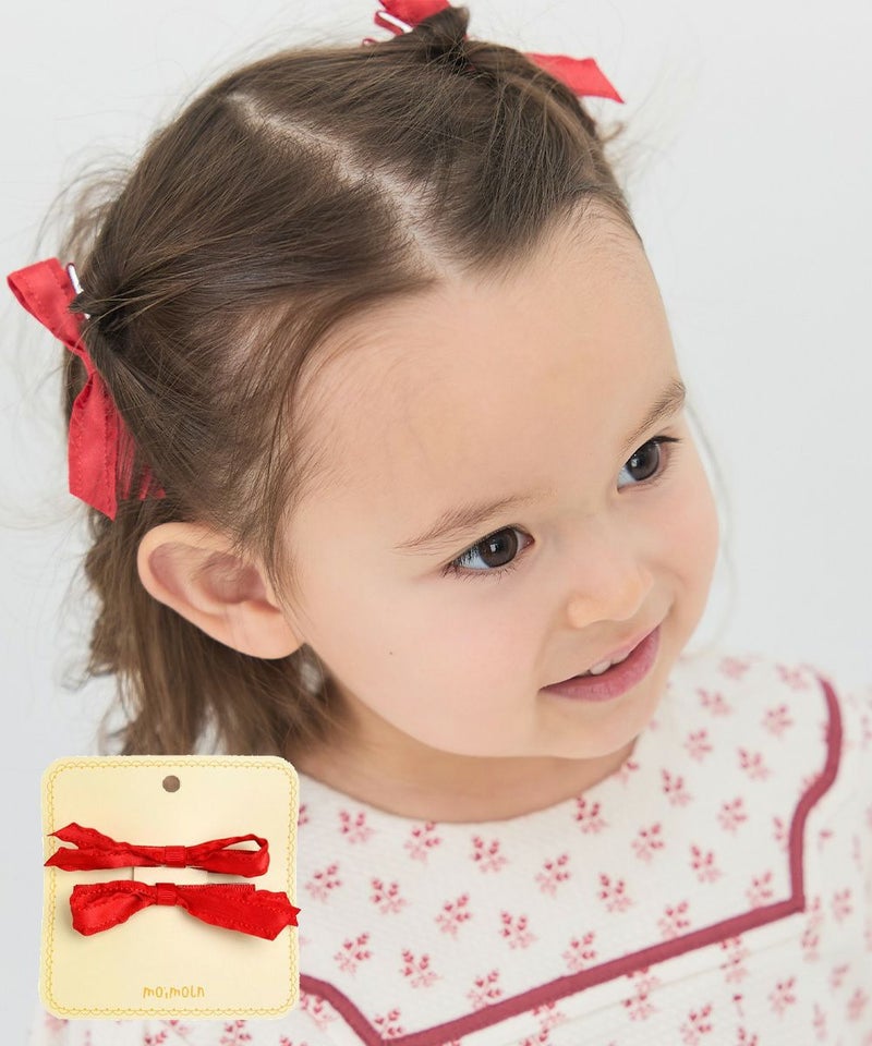 リボンヘアピン2点セット。サテン素材がおめかしルックにピッタリ♪万能に使えるアイテムです。