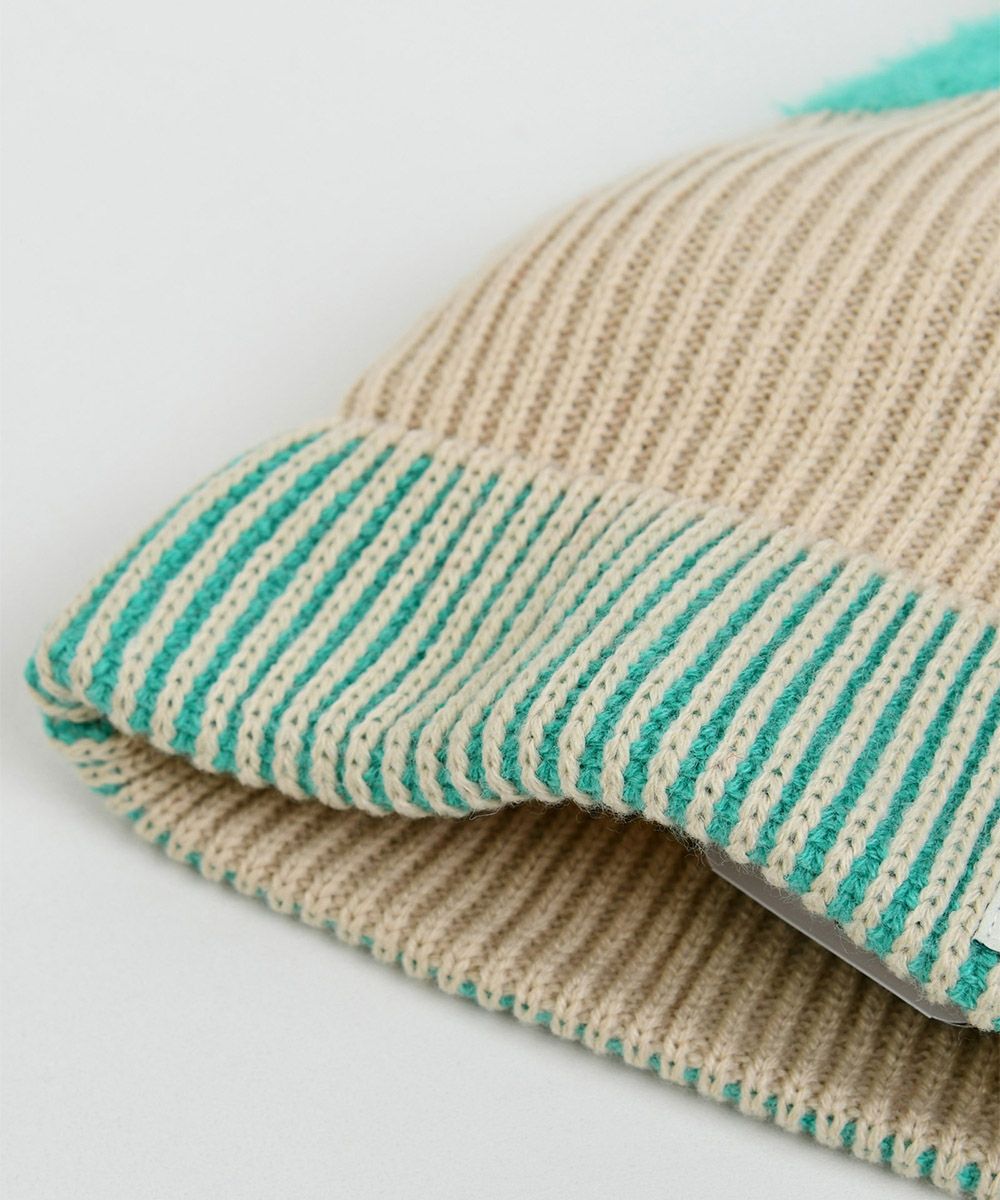 ベアカラーボーダーポンポンニット帽