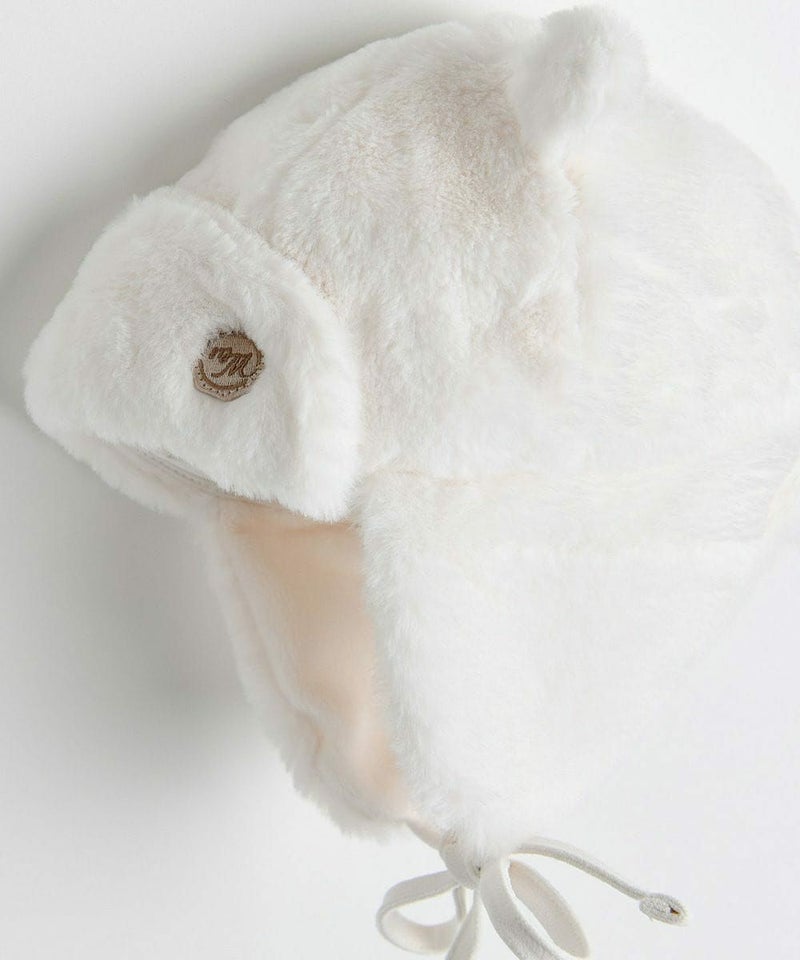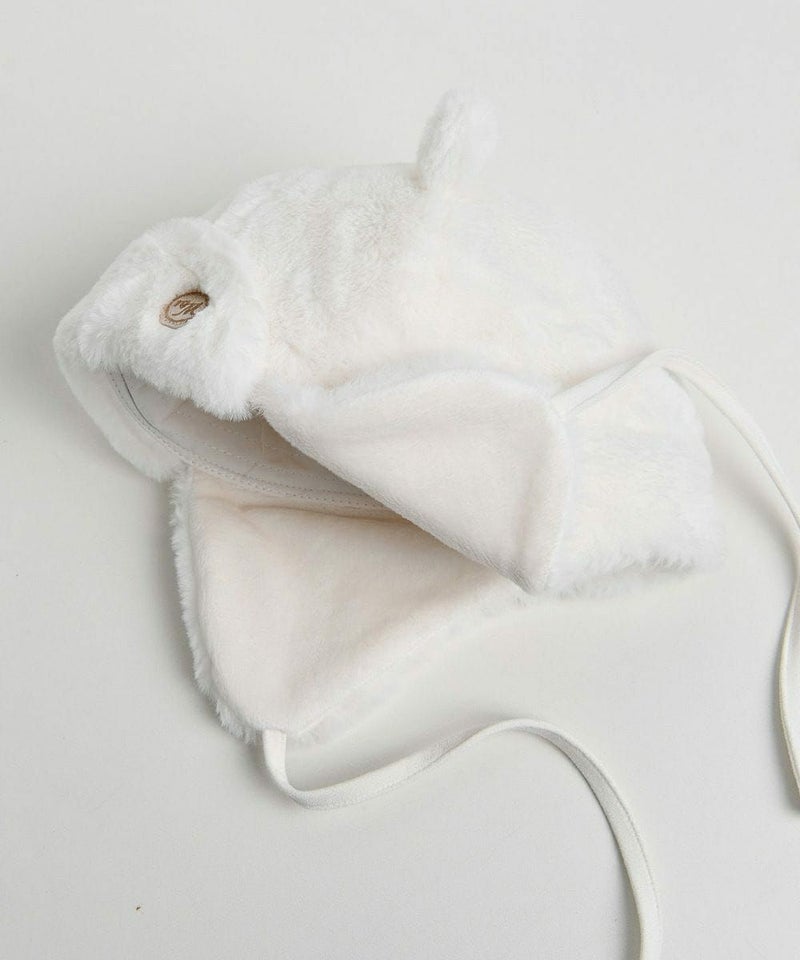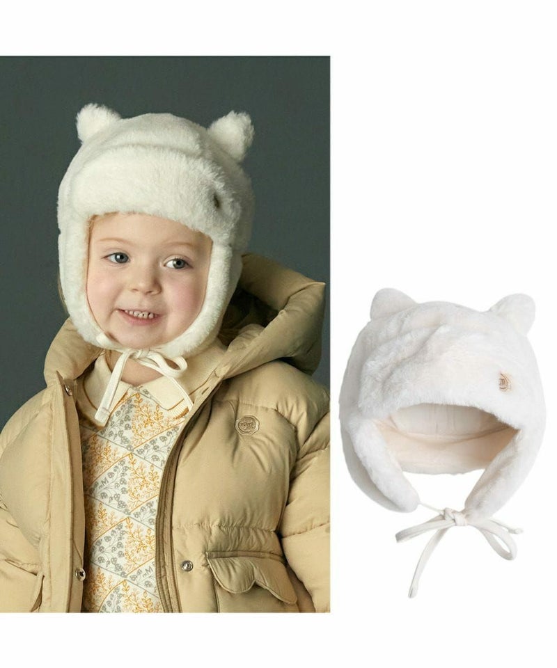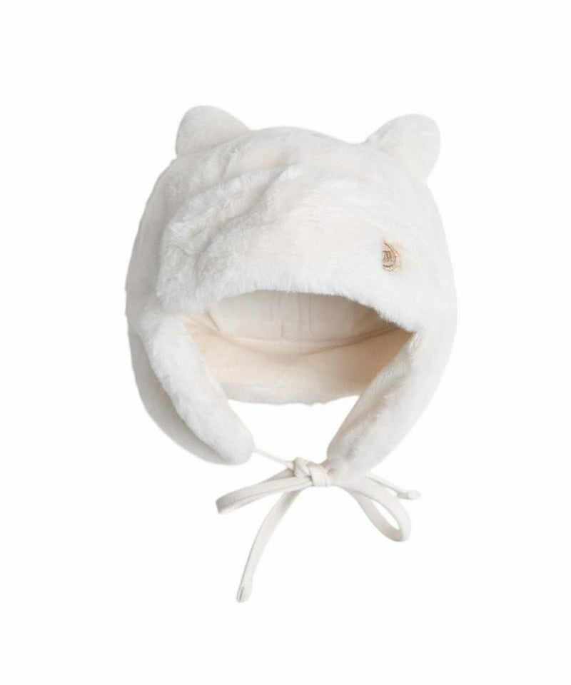 ファー素材の耳付き帽子。かわいい猫の飾り耳がポイントのアイテムです。