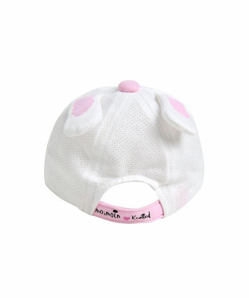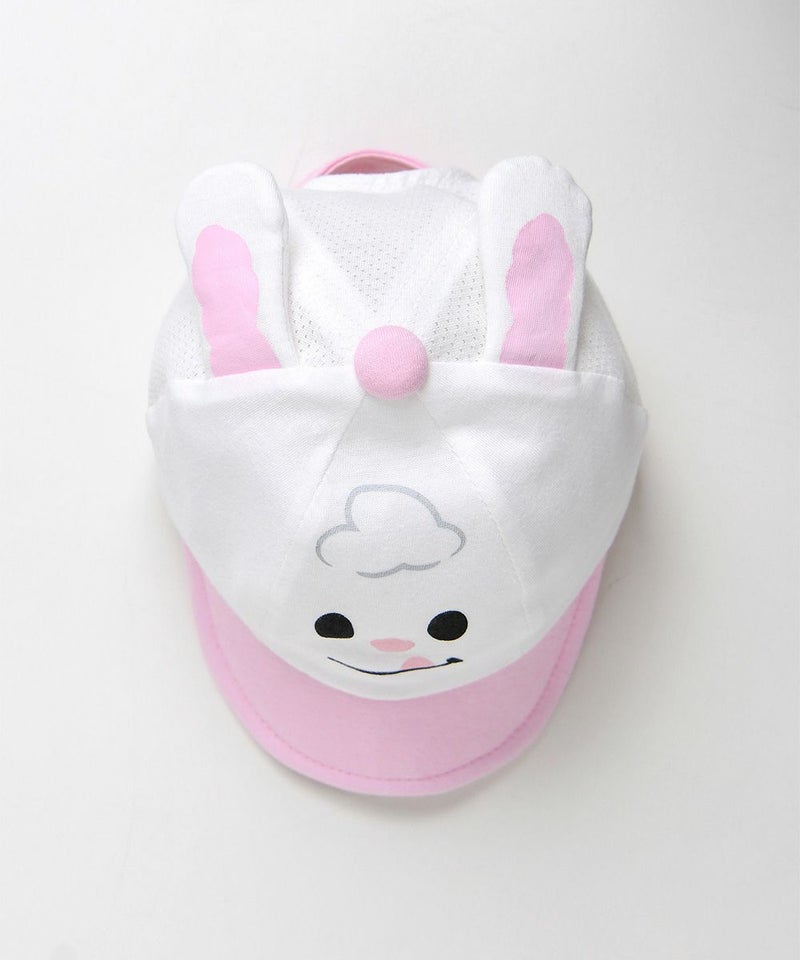 中央のクリームバニーが特徴的なキャップ帽。くるみボタンとつばのピンクカラーの配色と立体耳の飾りでポイントを与えたアイテム。(W242BUN90P)とのコーディネートがおすすめです。