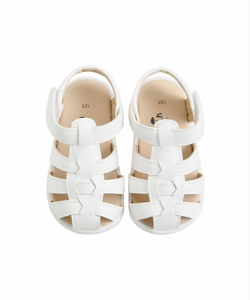 涼しい雰囲気のホワイトカラーのサンダルメロディシューズ。細部まで凝ったディテールがポイントで、男女関係なく着用可能で、シンプルなデザインのため、どんなコーディネートにも似合うアイテムです。