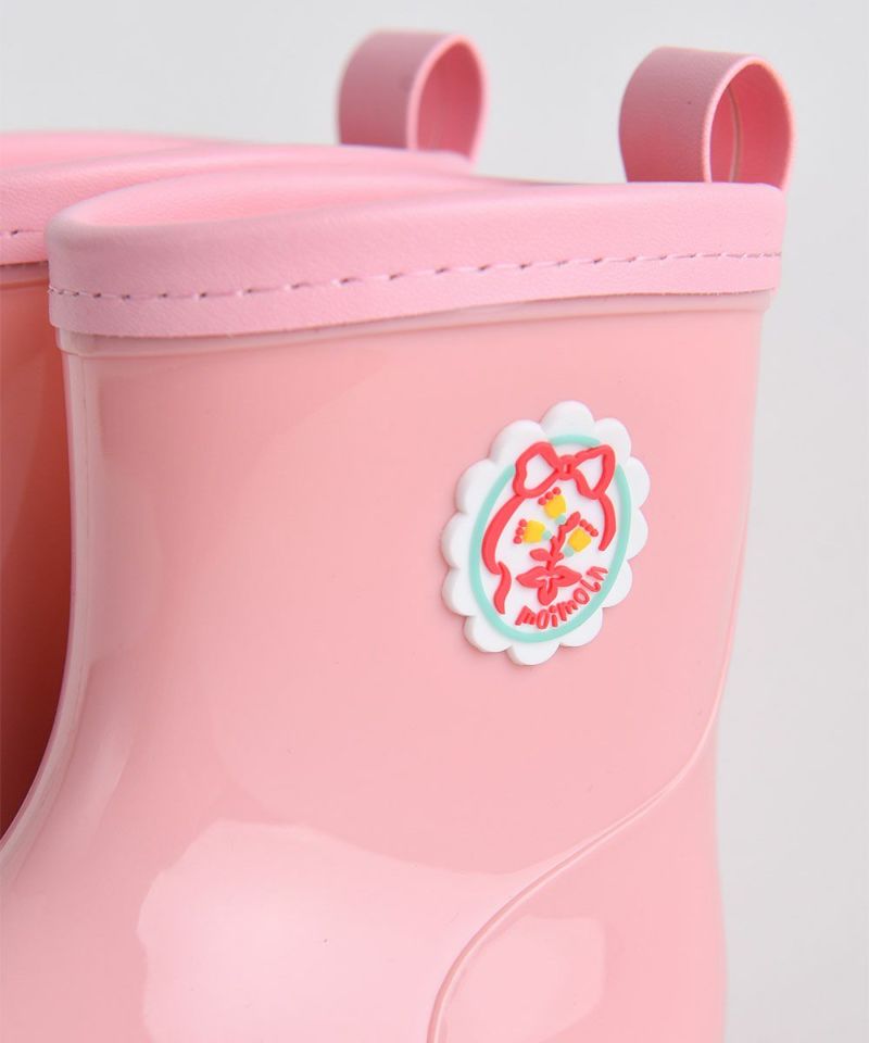 リボンフラワーレインコートの柄と関連する可愛いワッペンがアクセントのレインブーツ。リボンフラワーレインコート(W248RCI08P)とのコーディネートがおすすめです。