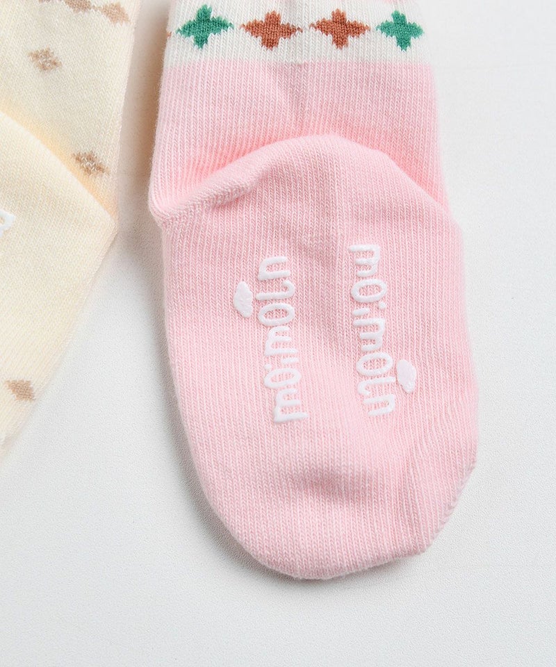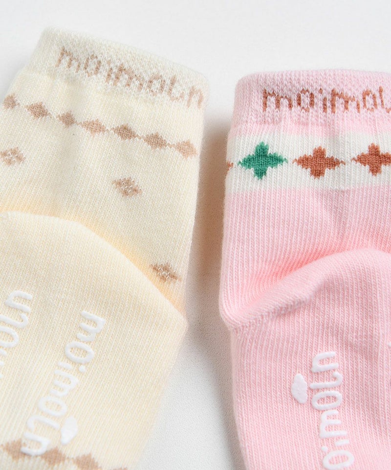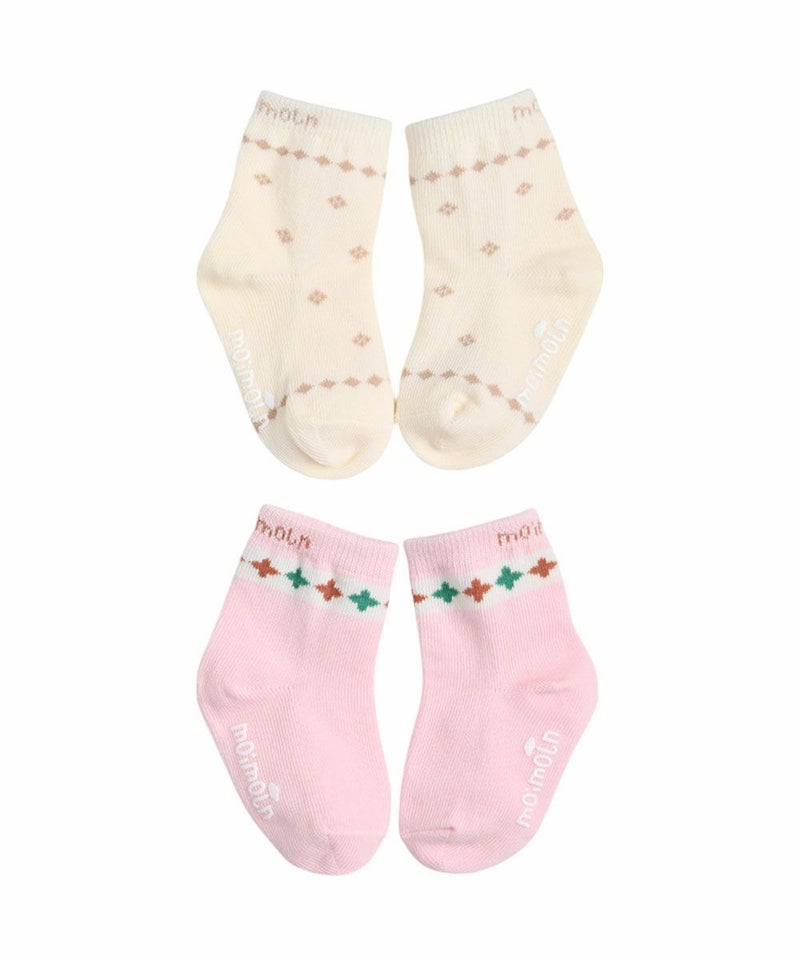 アイボリー、ピンクカラーの2色で女の子がデイリーで着やすいソックスセット。図形をモチーフに可愛らしく演出したアイテムです。