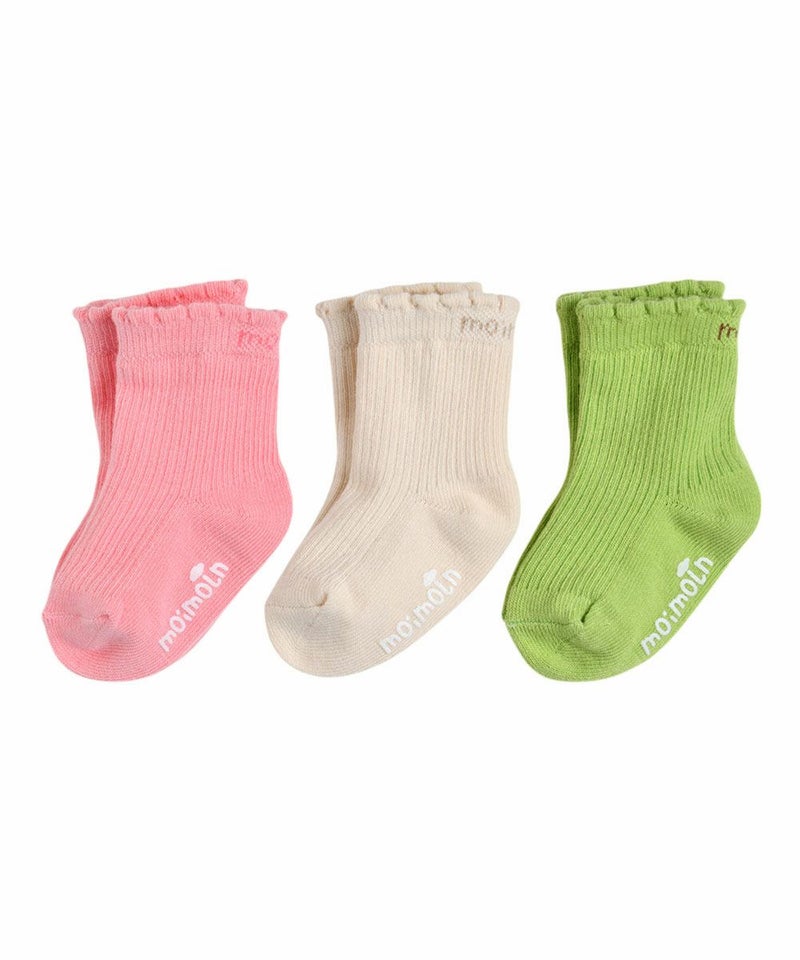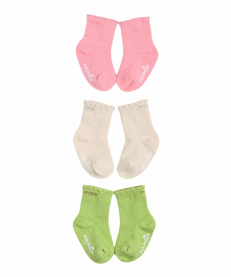 さわやかでユニークなカラーの組み合わせで各カラー別のポイントが目立ち、凹凸のあるスカラップの足首の部分が女の子らしいソックス3枚セット。