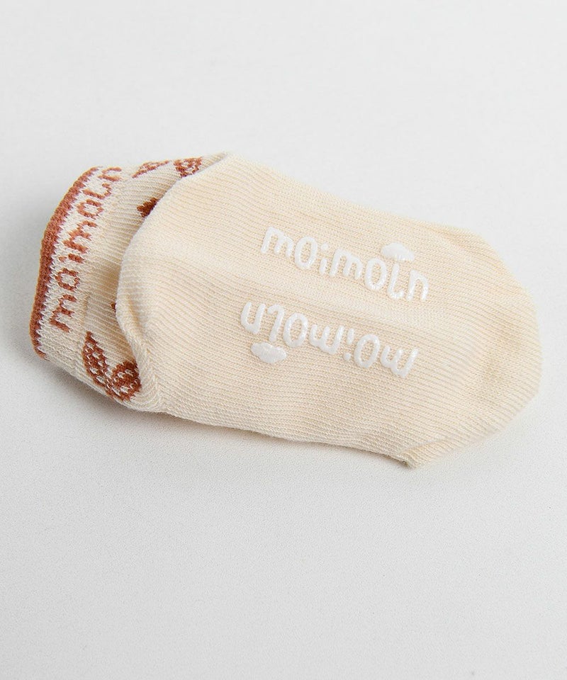 6才・足のサイズ17.5㎝で18サイズを履いてちょうどよいです。 合わせやすい色で、裏にはmoimolnのロゴが滑り止めになっています。