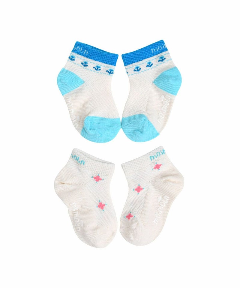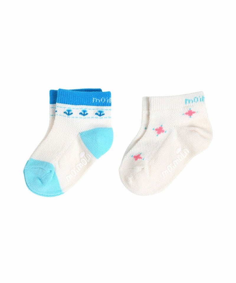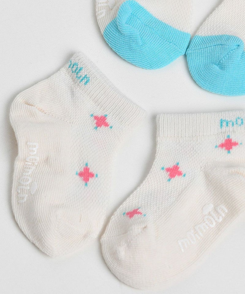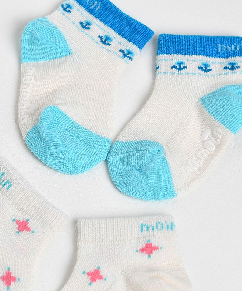 メッシュな素材のソックスで暑い夏に涼しく着用できる足首丈のスニーカーソックスセット。アイボリーカラーに可愛いブルーカラーで配色ポイントを加え涼しげな雰囲気のアイテムです。