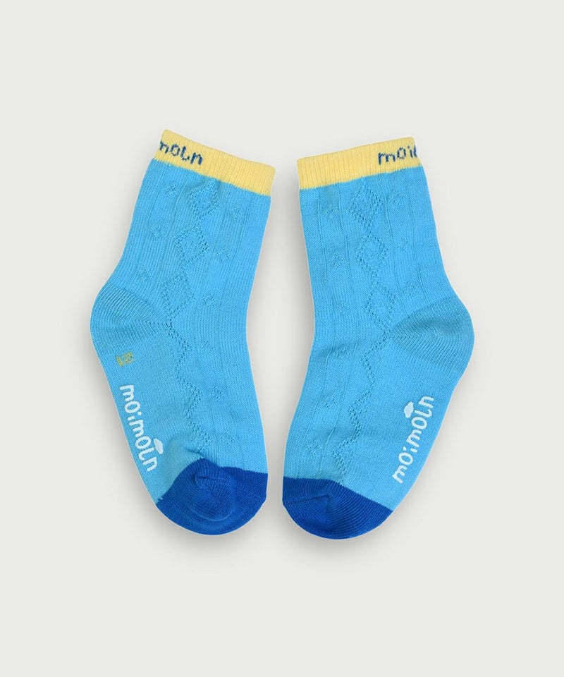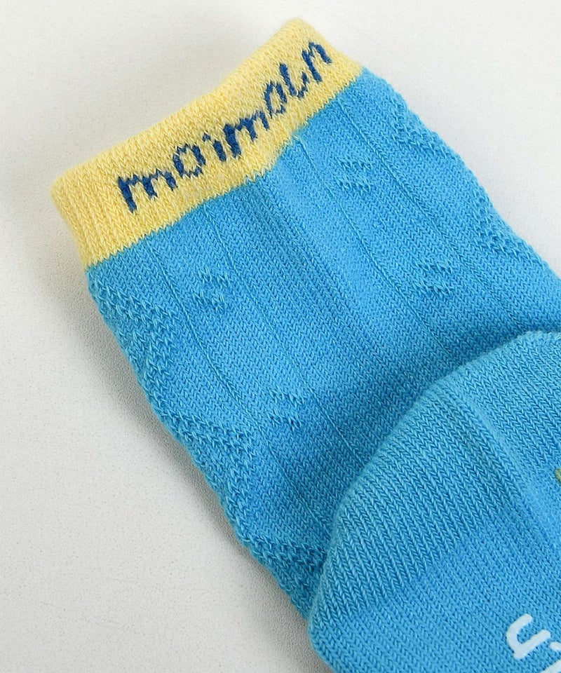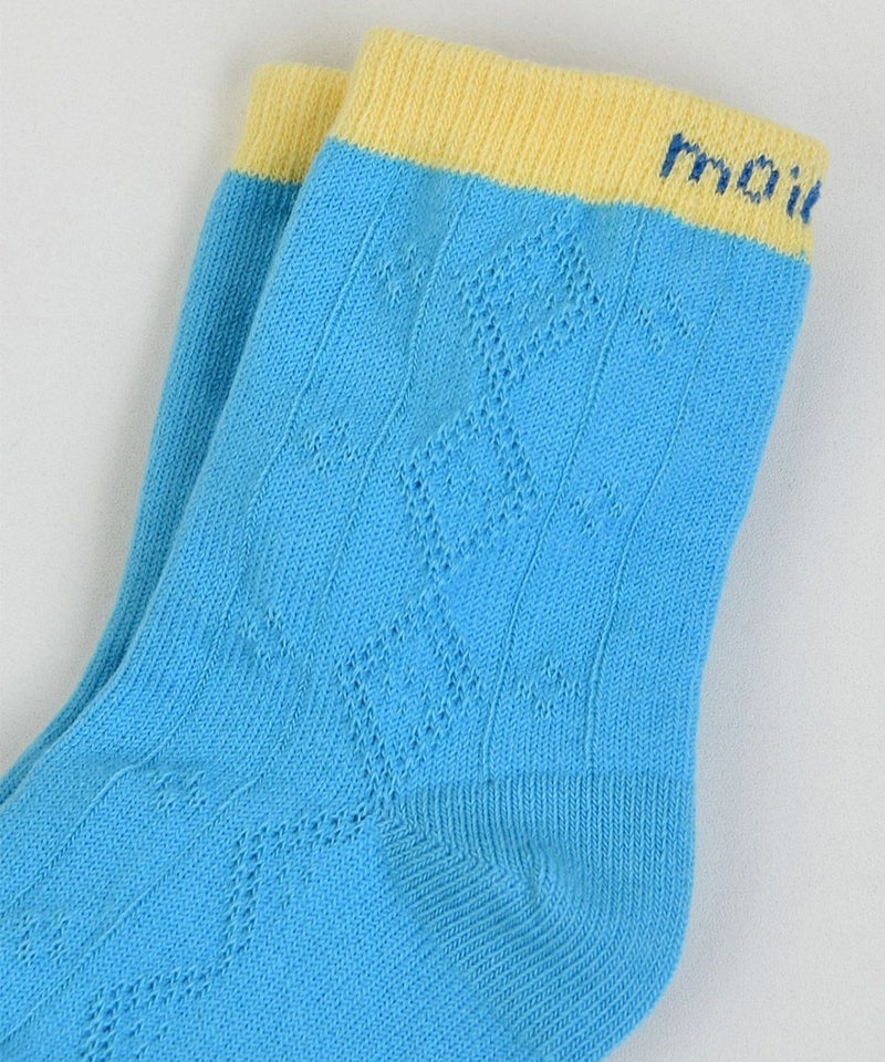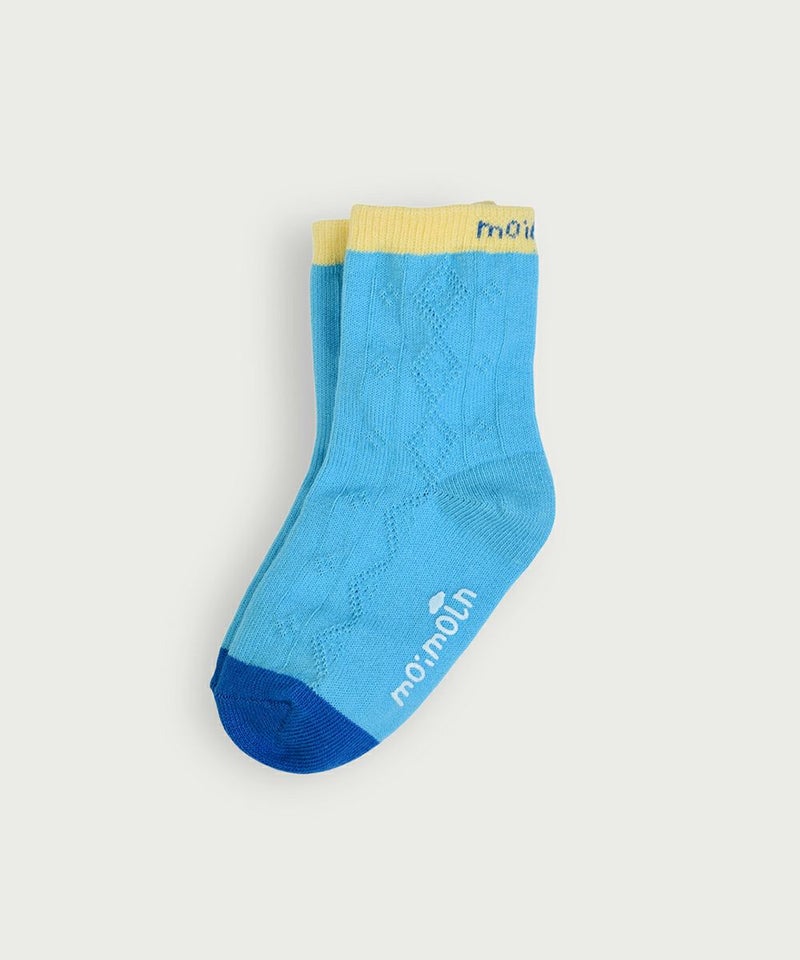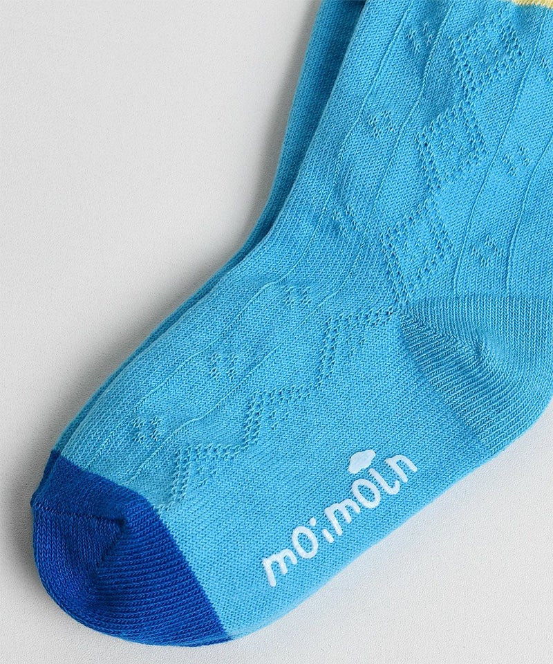 ブルーカラーにディープなカラーを配色したジャカードの靴下。
