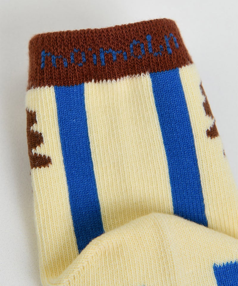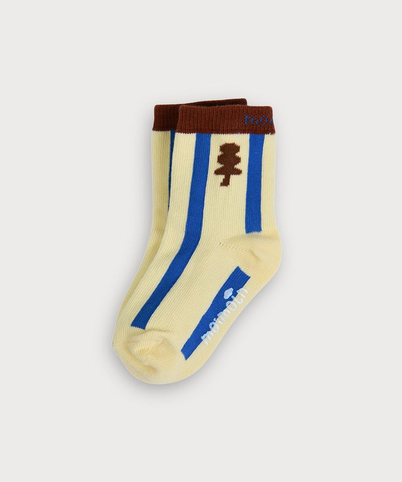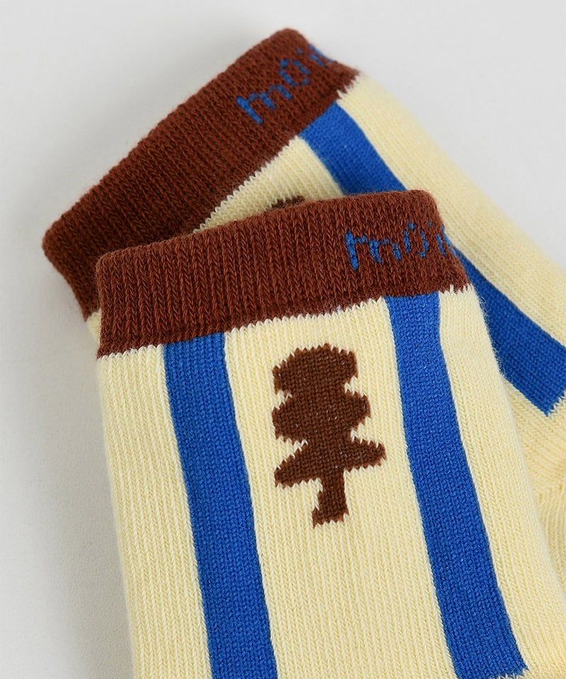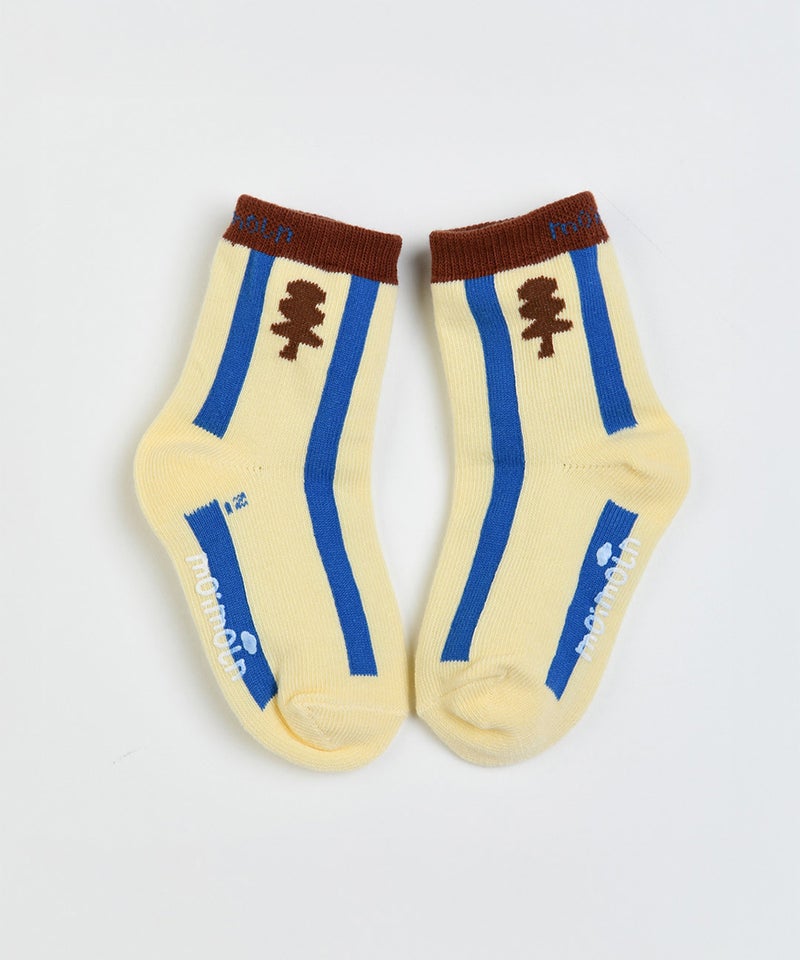 バターの様なカラーベースに木をモチーフにした柄をプラスした靴下。