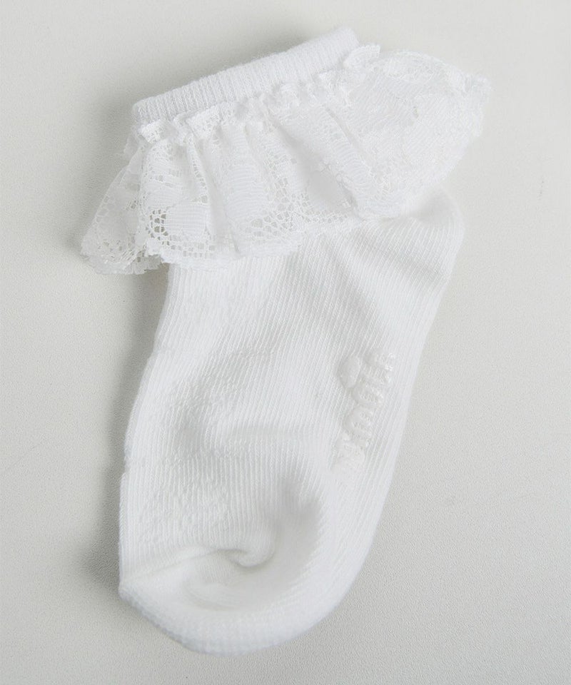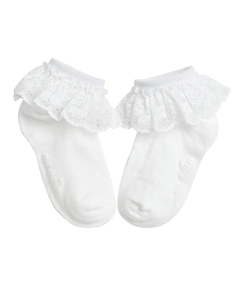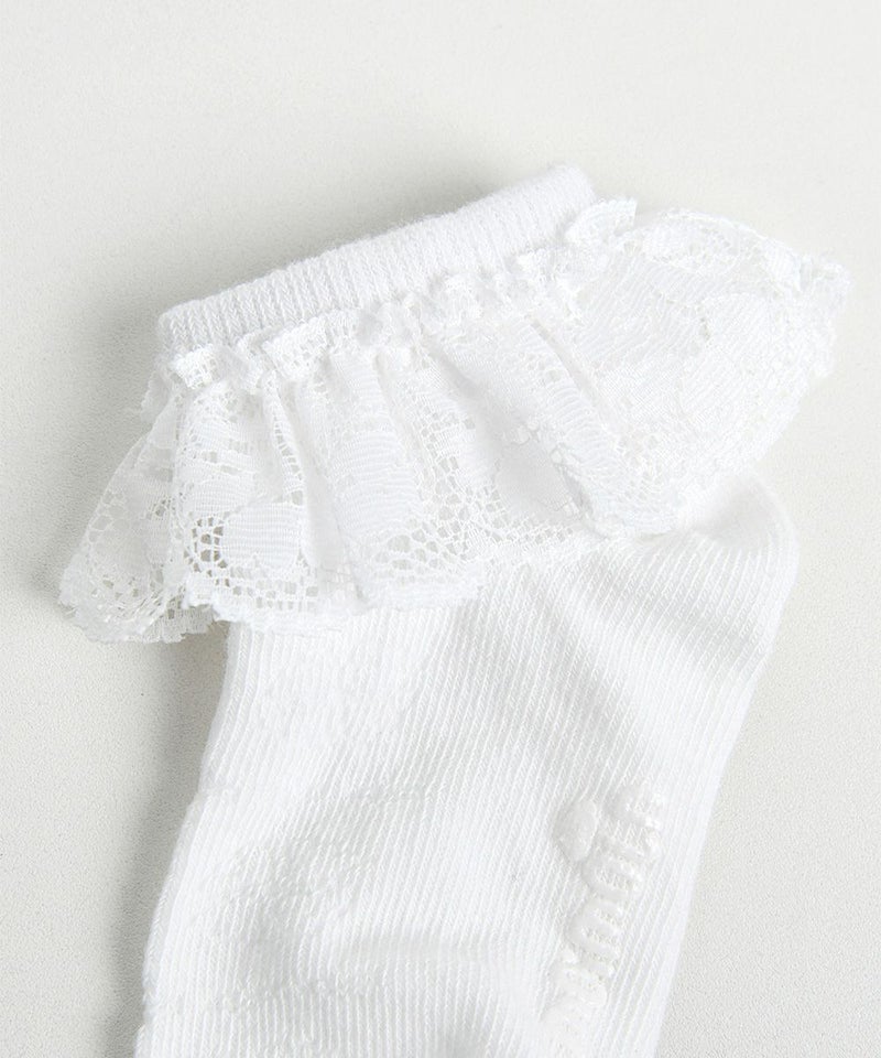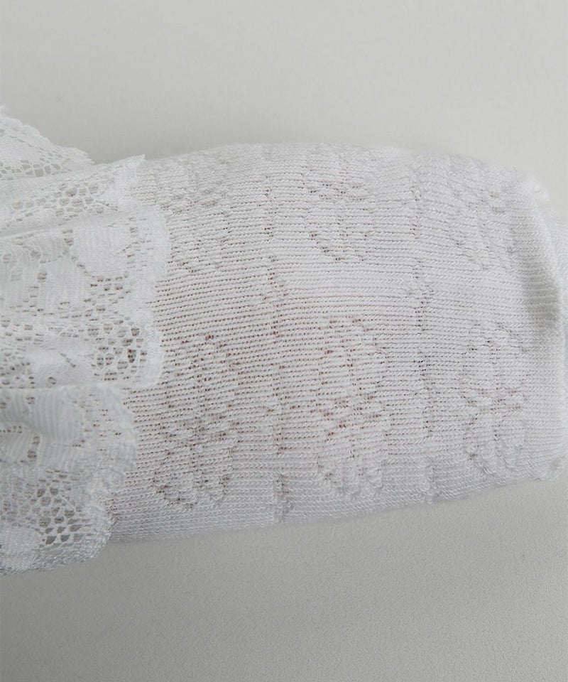 夏用の履き心地が良い薄手ジャカード素材のソックス。フリルレースで足首を飾ったかわいいデザインで、様々なワンピースやスペシャルラインアイテムとマルチコーディネートがおすすめのアイテムです。