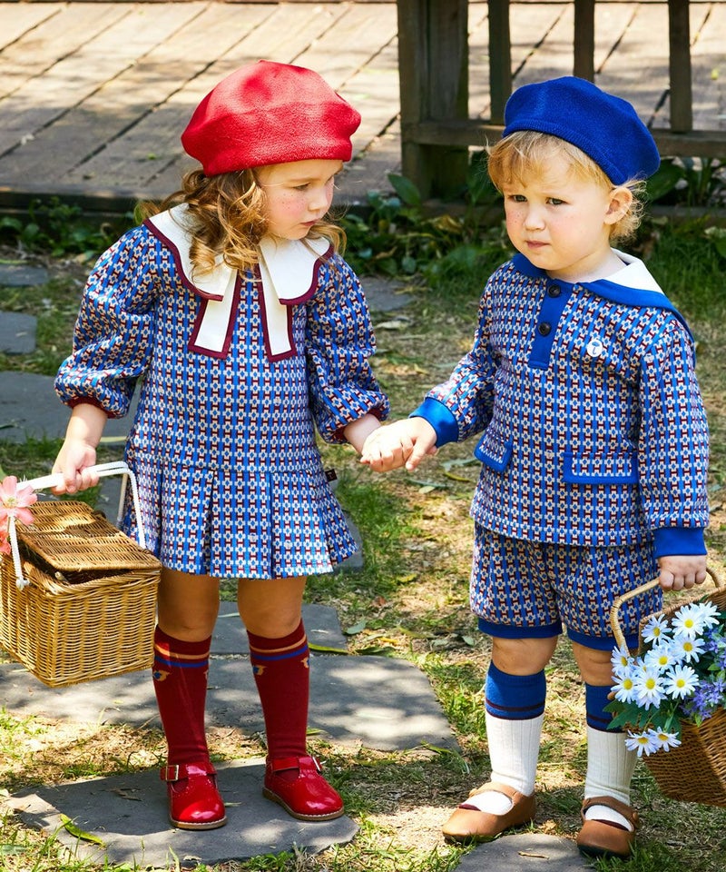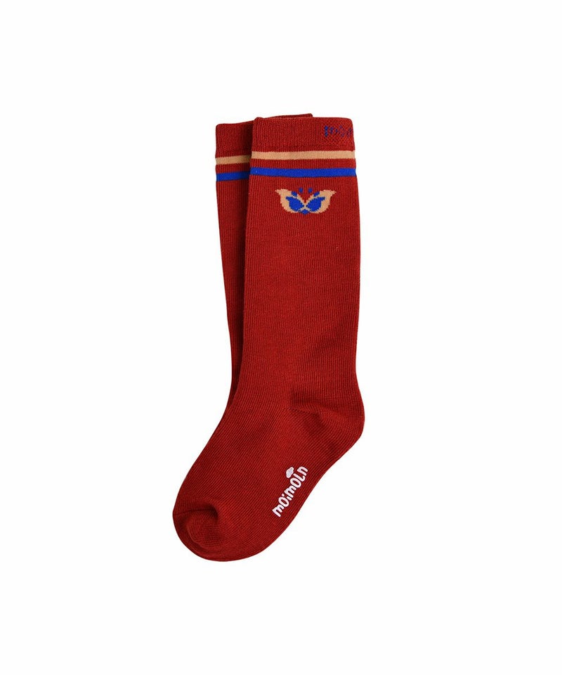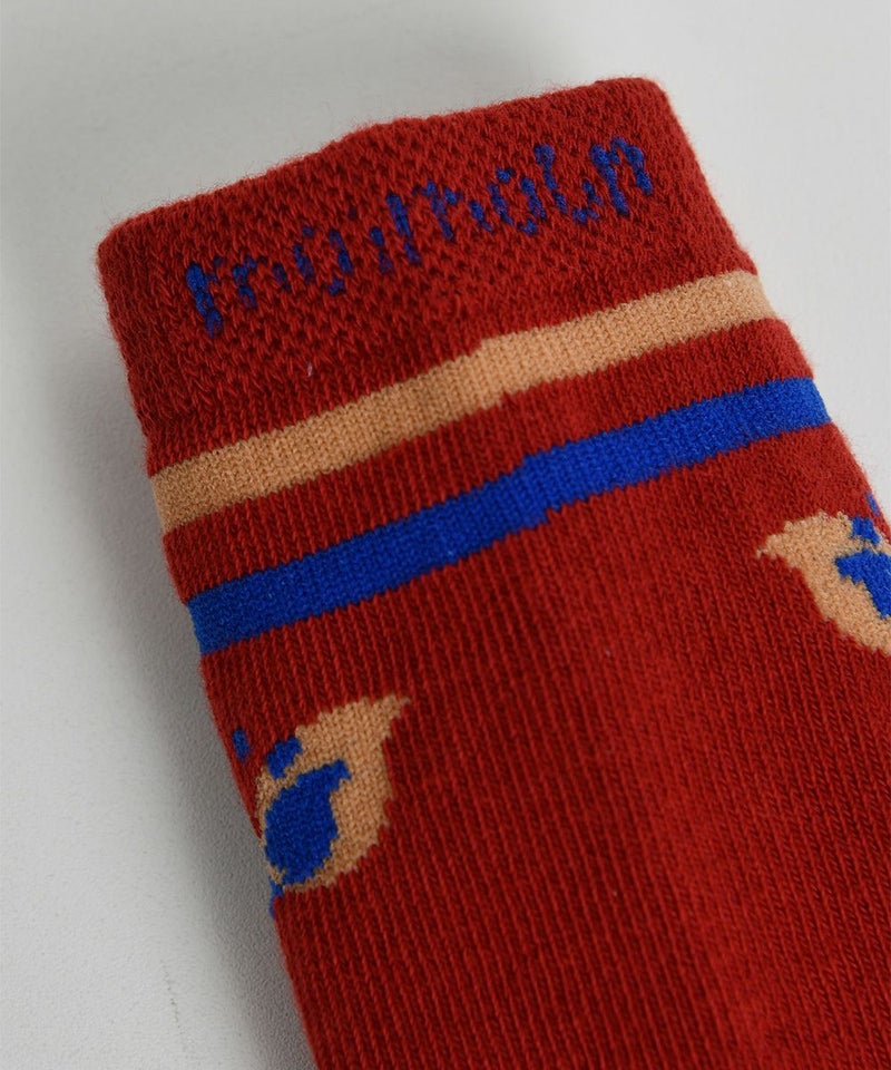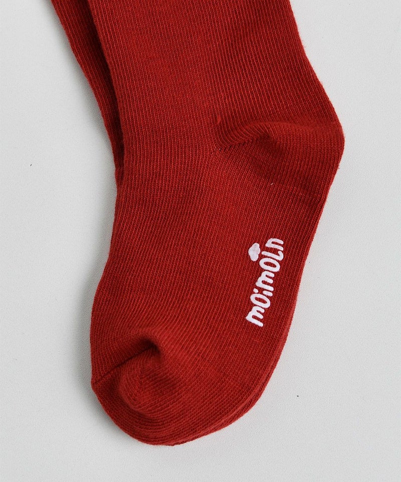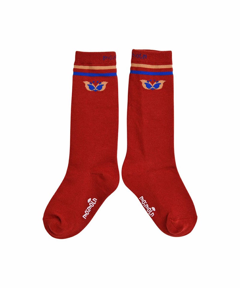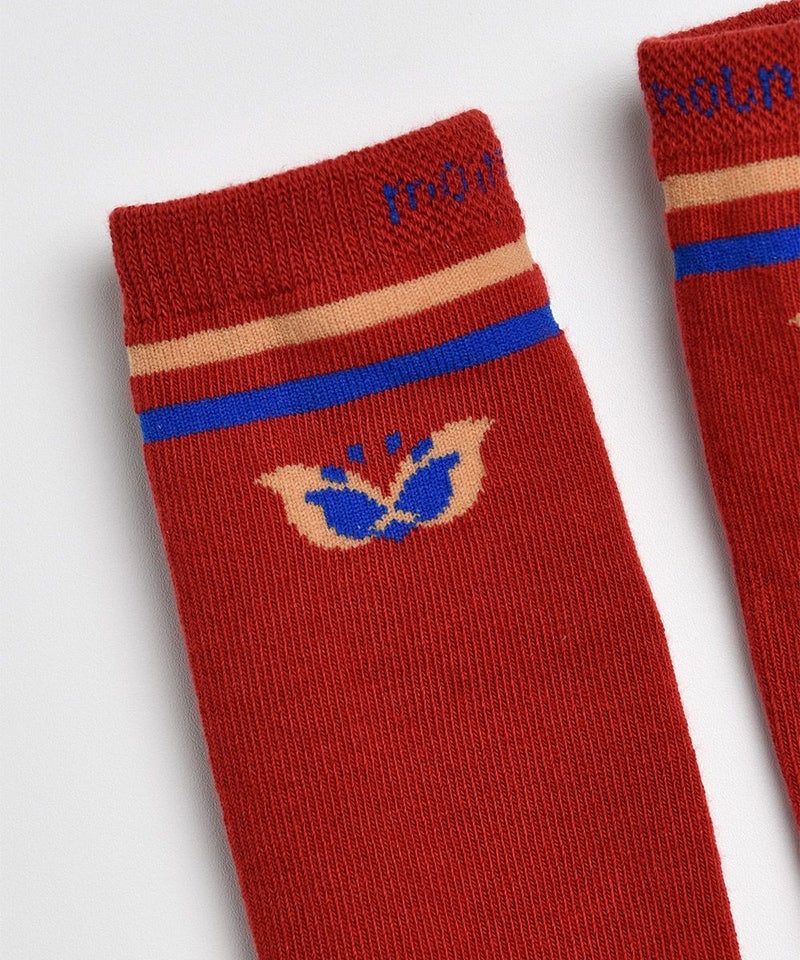 季節の変わり目から着用が可能なしっかりとした素材のハイソックス。バーガンディと調和したカラー配色がポイントで、蝶柄ニットカーディガン(W241GDB33P)、チェックフレアミニスカート(W241SKB41P)とのコーディネートがおすすめです。