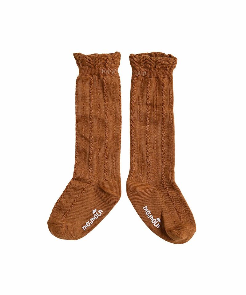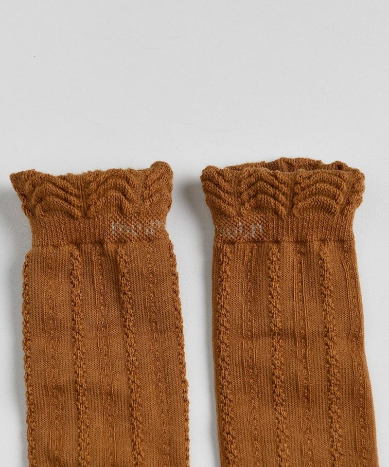 波のような模様がポイントのロングソックス。ジャカードのパターンがシンプルながらもワンピースなど様々なコーディネートが可能なアイテムです。