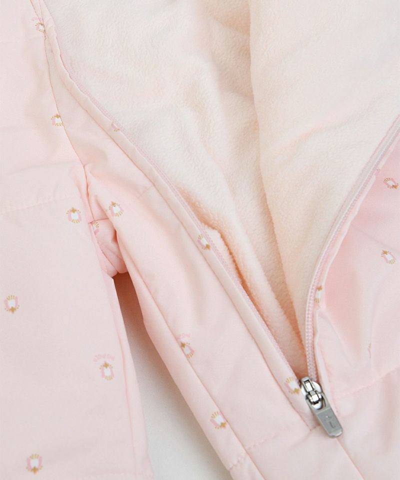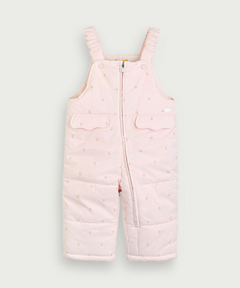 はっ水加工された生地のスキーやそりのシーズンにも役立つ防寒タイプのオーバーオール。肩紐にはゴム入りで伸縮性もあり、内部ナップボタンで長さ調整も可能、飾りポケットの変形アウトポケットがアクセントに。フロントはファスナーで脱着が簡単、ファスナーの内側にはファスナーガードを付け、肌への刺激を防止しています。裏地はフリースで暖か、足首は二重構造で風も防いでくれ、保温性と実用性を高めたアイテム。