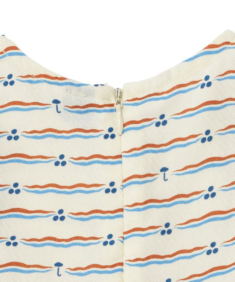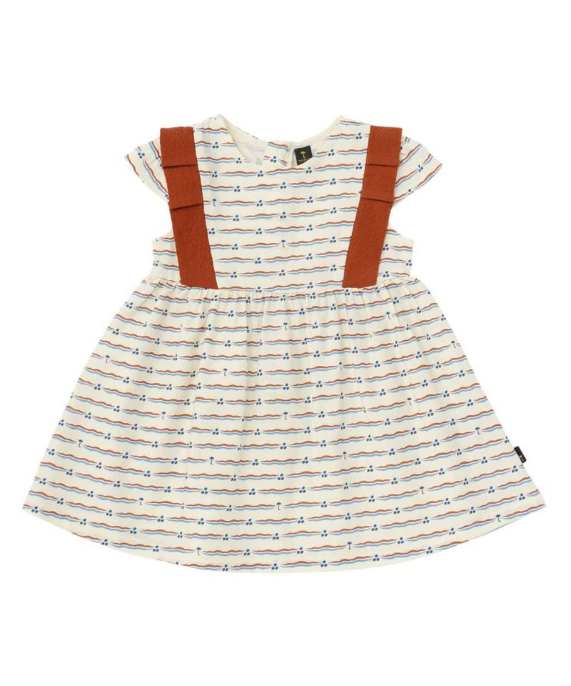 肩から腰まで続く配色バンドがポイントの半袖ワンピース。
