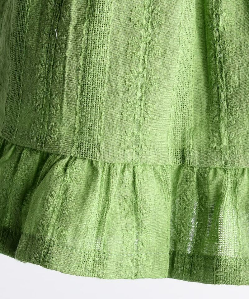 もうすぐ2歳になる娘、来年用に110サイズを購入しました。 セットで着るのはもちろん、単体で使っても可愛いです。 大きめの襟、スカートがふわっと、裾はひらひらとなっていて可愛いらしいワンピースです。
