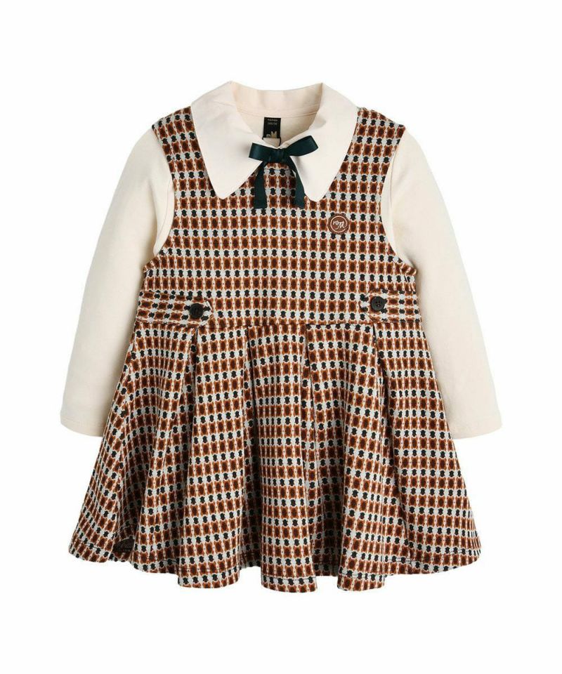 柔らかい素材の襟付Tシャツとクラシックな雰囲気のジャカードジャンパースカートセット。取り外し可能なリボンタイがセット。ギフト用にも喜んでいただけるアイテムです。【セットアップ】ダニエルトップス&5分丈パンツ(W243STG16P)との兄妹ルックもおすすめです。