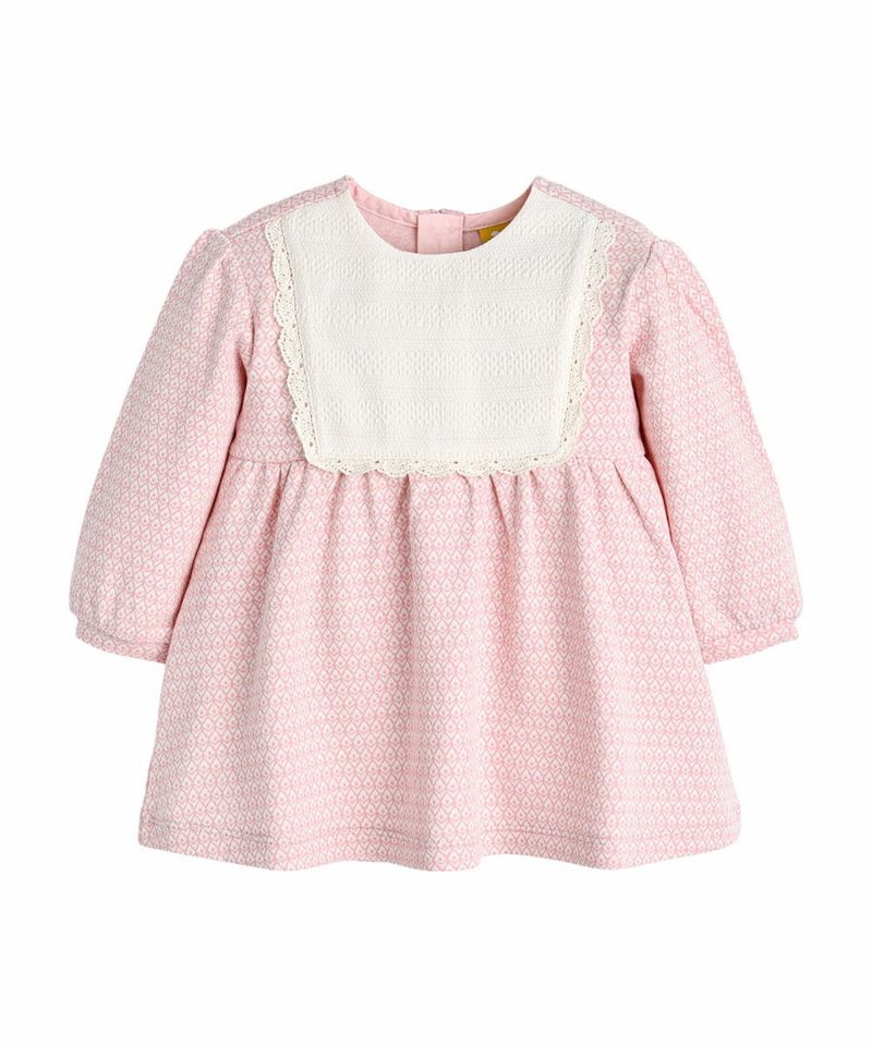 穏やかなクローバーモチーフのパターンにアイボリーヨークで華やかさをプラスしたジャカードワンピース。愛らしいピンクカラーで春のデイリールックとして適しており、フィラインニットベレー帽(M251CAI01P)、バタフライロングソックス(M251TII06P)と一緒にラブリーなコーディネートをおすすめします。