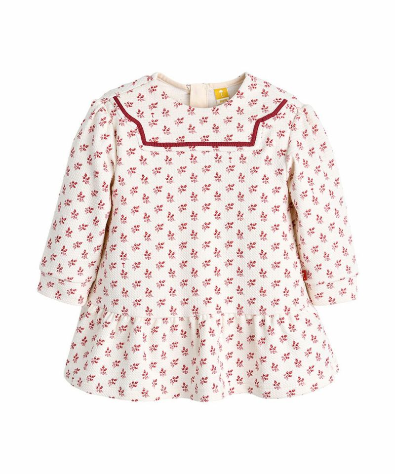ポリ素材で製作しているためしわがつきにくく、楽に着られるワンピース。雰囲気のあるグラフィックとネックラインのテープ装飾が上品なアイテム。【SOFT&】ルーンニットカーディガン(M251GDF02P)、【2点セット】リボンヘアピン(M258MPI06P)、ハーパーロングソックス(M251TII05P)とコーディネートすればさわやかなルックに♪