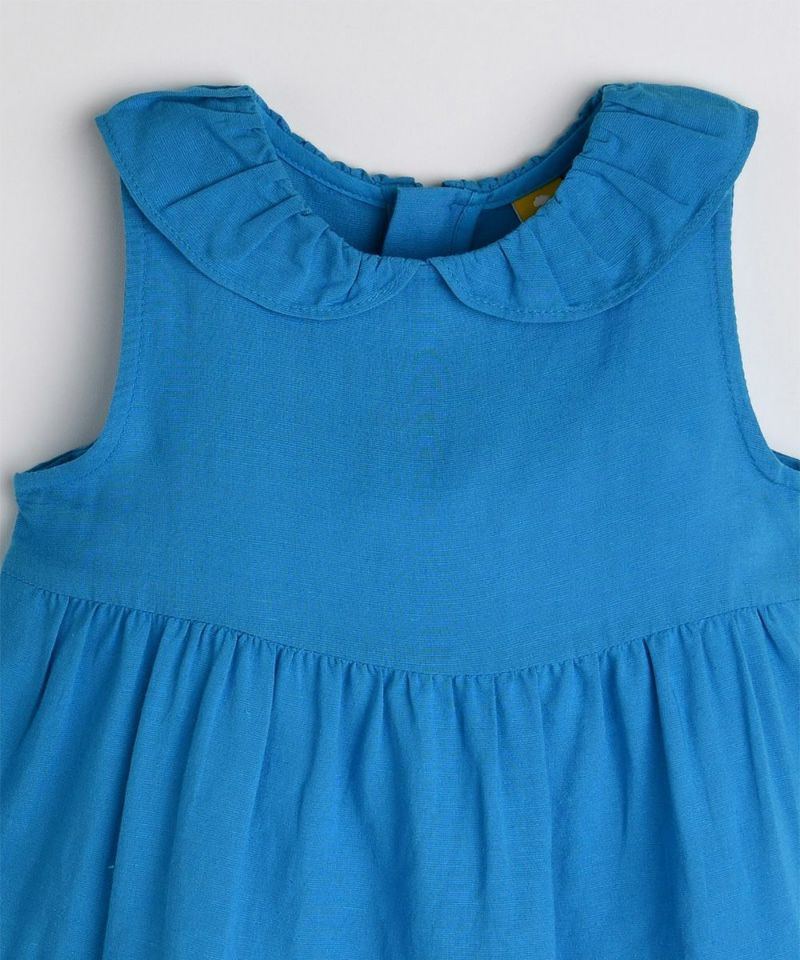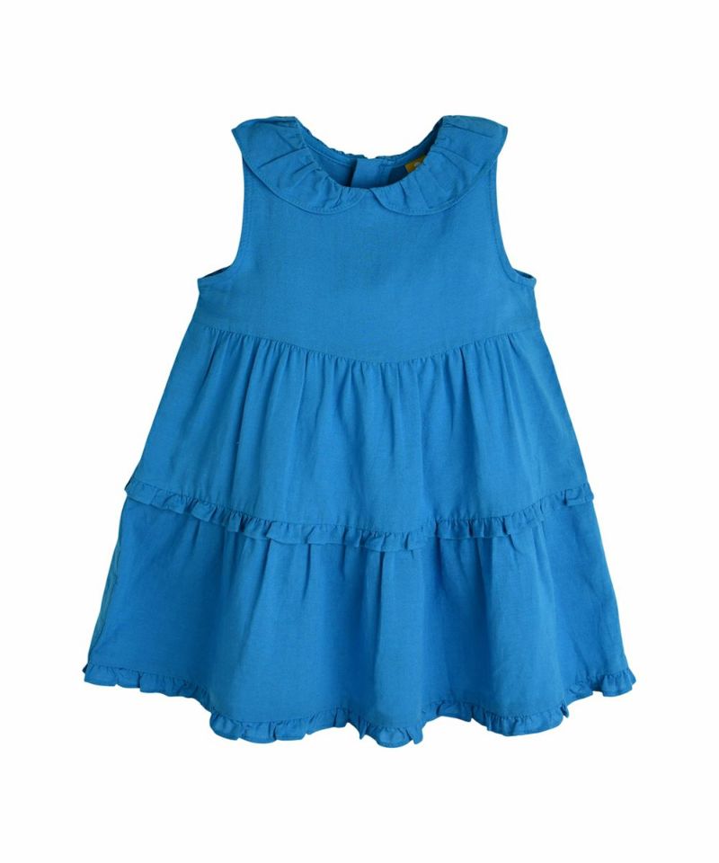 小さなフリルが段ごとに施されているノースリーブワンピース。ふんわりとしたシルエットで、楽なフィット感で着用可能。通気性が良い素材を使用しているため、快適に着用でき、青い海のような涼しいカラー感で暑い夏に大活躍するアイテムです。