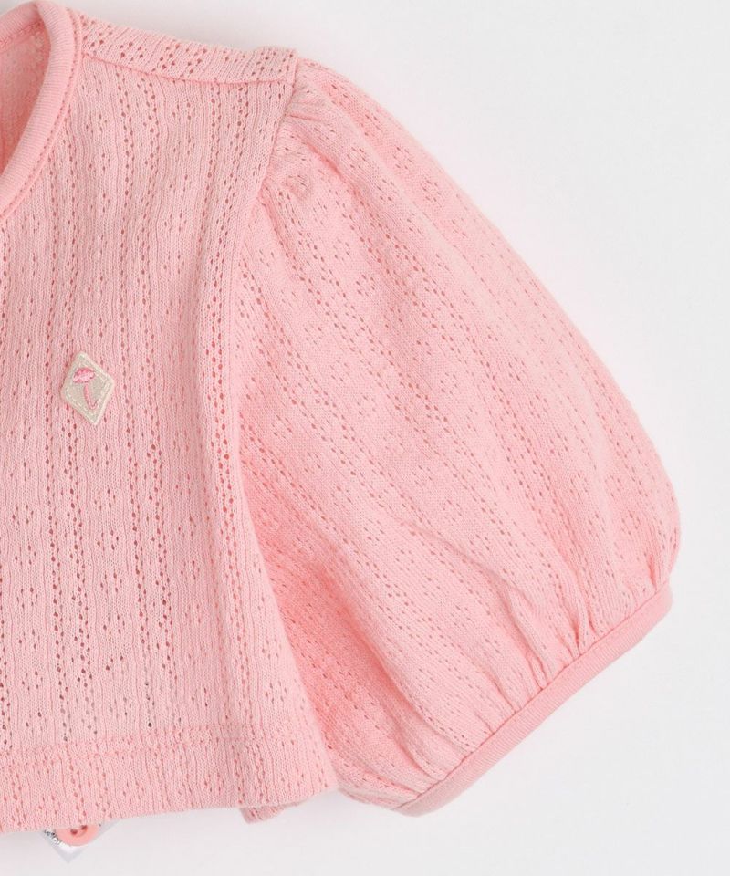 涼しいパフスリーブカーディガンとノースリーブワンピースのセット。肌寒い雨の日に羽織りやすい半袖カーディガンは活用度が高く、ワンピースの強い色見と穏やかな図形の総柄が、唯一無二のおしゃれ感をだしているアイテムです。エンザイム加工により着心地がさらに柔らかく洗濯後も変形が少ないアイテム。