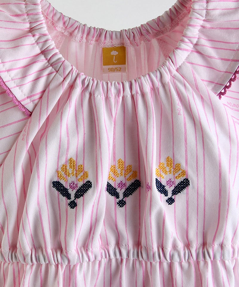 ベリーやフラワーの刺繍の付いたCuteな半袖ワンピース。
