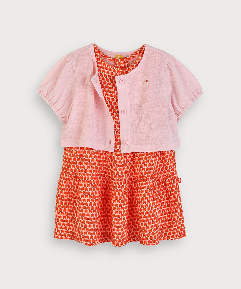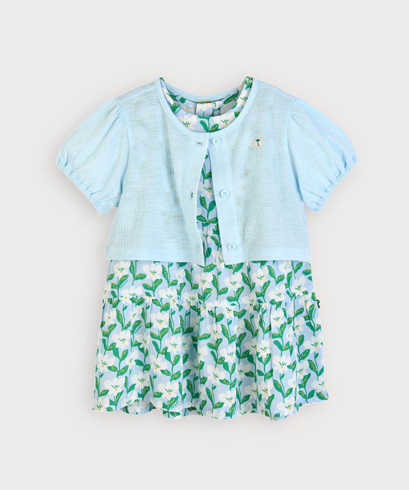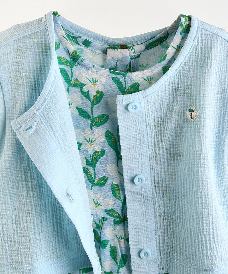 【2点セット】無地ショートカーディガン&マルチフラワーノースリーブワンピース