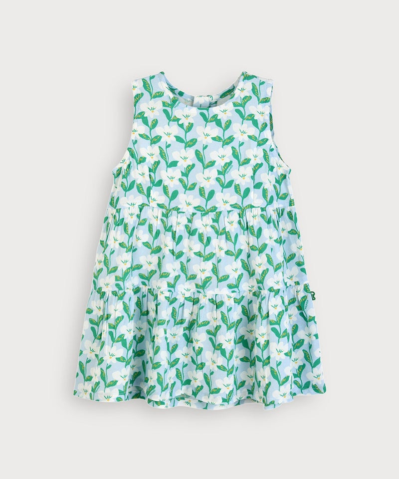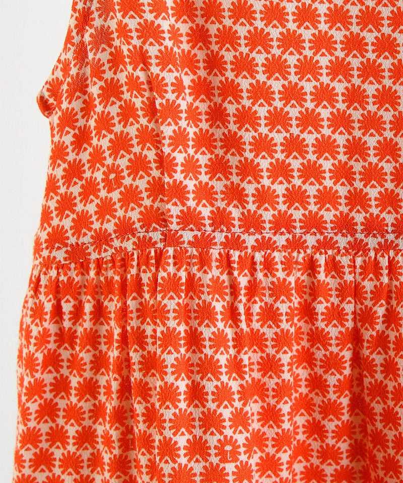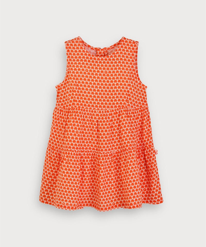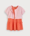 カラーによって異なる柄プリントのノースリワンピースとカーディガンのセット。