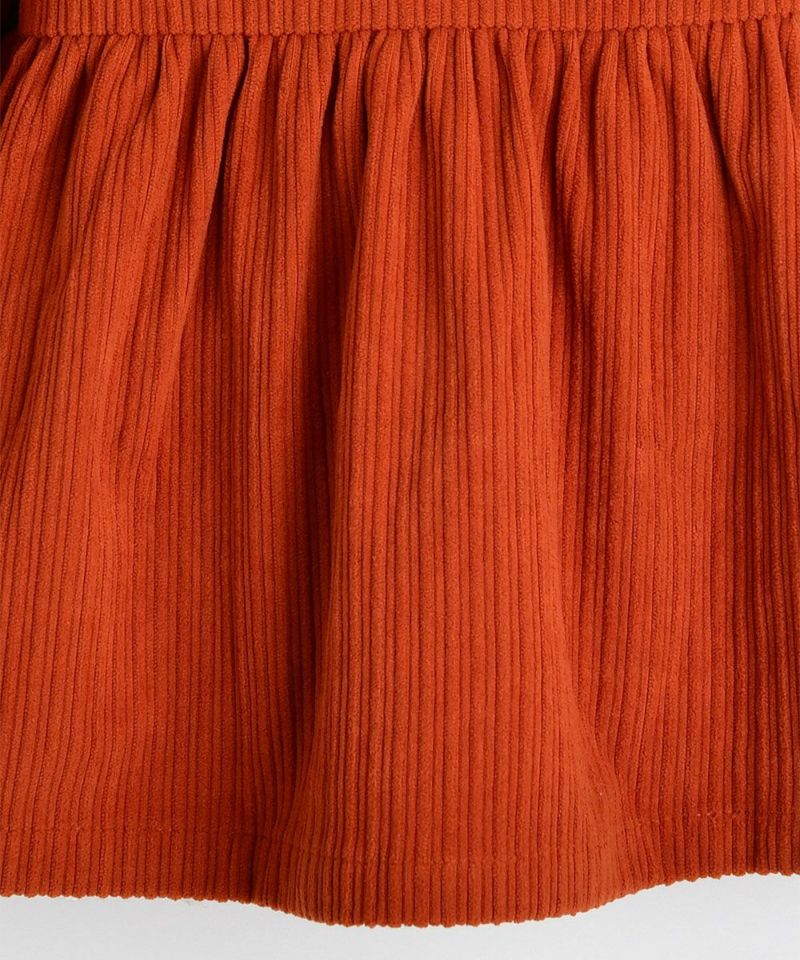 厚みのある生地で秋冬のお出かけにぴったりです。 レンガ色に惹かれて購入しましたが、肩のフリルの広がりや水色の刺繍、レースが想像以上に可愛くてとても気に入っています。
