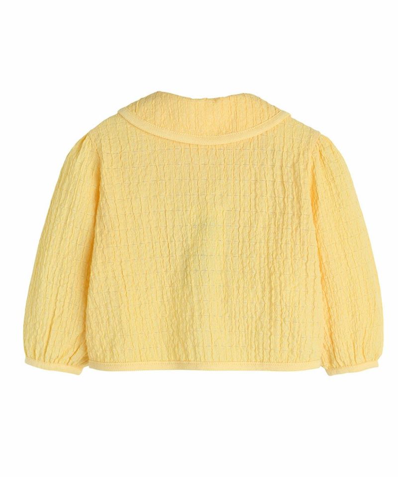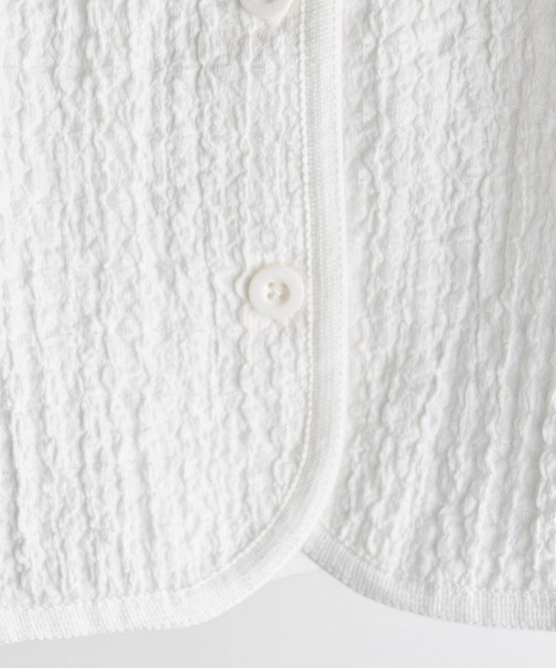 丈夫な縫い方が特徴のカーディガンで隙間から空気が通り、快適な着心地を与える季節の変わり目から初夏の夜まで着られるカーディガン。小さな襟と装飾で可愛さを加え、Aラインフィットでワンピース、デニムパンツとコーデすることでラブリーにもカジュアルにもなる実用的なアイテムです。
