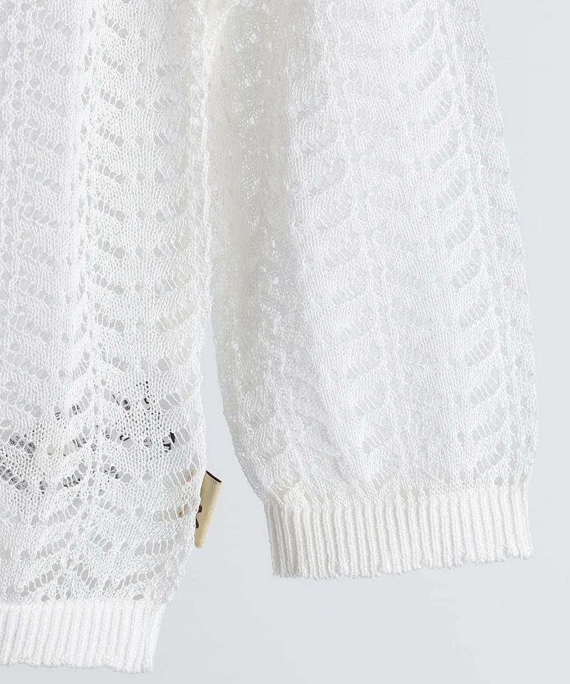 高級感のある透かし編みカーディガン。軽くて涼しく羽織れて夏の冷房対策にも◎襟ディテールポイントになり、ベーシックな色味でマルチコーデに使いやすいアイテムです。