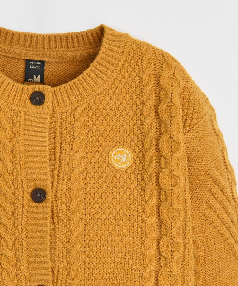 ケーブル編みがポイントのニットカーディガン。秋には1枚で、冬にはダウンなどのインナーとして着れる幅広く活躍するアイテムです。