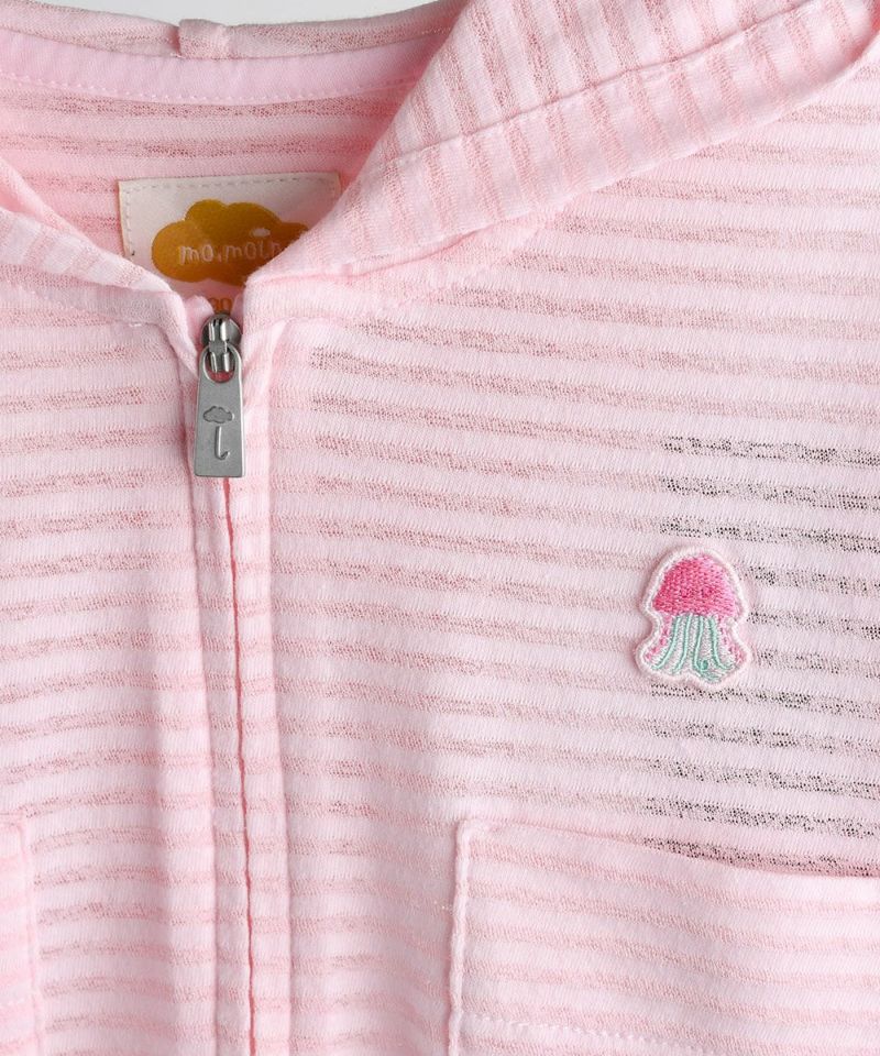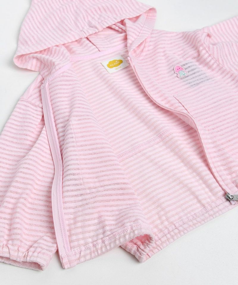 透け感のあるボーダージャンパー。クラゲのワッペンがポイント♪夏場の冷房対策や水着の上にも羽織りやすいアイテムです。