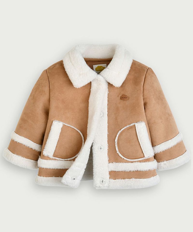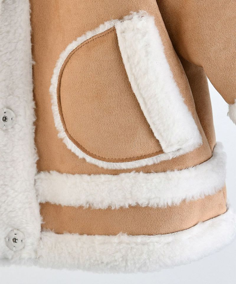 定番人気カラーのフェイクスウェードと柔らかくてふんわりとしたボアのバランスがかわいいフェイクムートンジャケット。隠しボタンで全体をすっきりさせ、両側にはポケット付き、胸元のさりげないmoimolnマークも付いています。暖かい感性を加え、セミAラインのジャケットスタイルで様々なスタイルとコーディネートしやすいアイテムです。* 素材の特性上、熱に弱いためお湯や乾燥機の使用を避け、軽い汚れは部分洗濯をお勧めいたします。