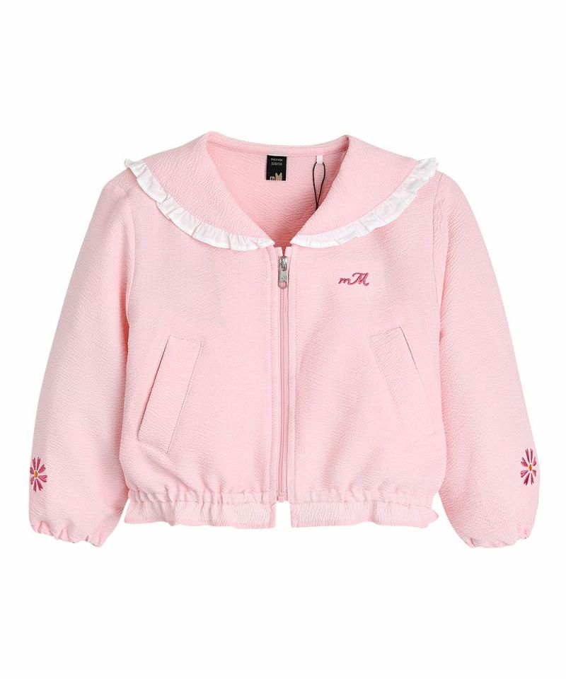 クールなタッチ感のジャンパー。フリル付きの襟とフラワーの刺繍がポイントで、セミクロップ丈のラブリーなアイテム。ページキュロットパンツ(W242PTG41P)とセットアップコーディネートがおすすめです。