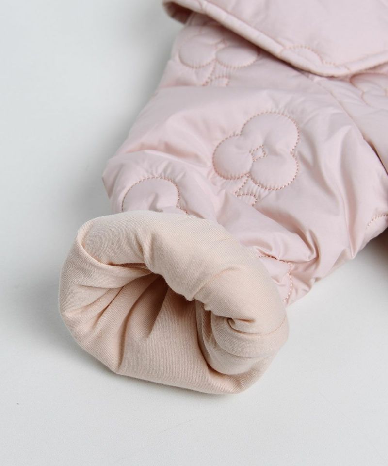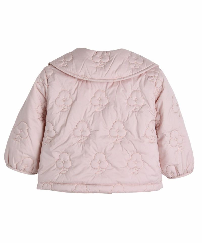 ラブリーな色合いとフラワーモチーフの刺繍がポイントのキルティングジャンパー。大きな襟で可愛らしさをプラスし、薄くて軽いため、季節の変わり目にぴったりなアイテムです。