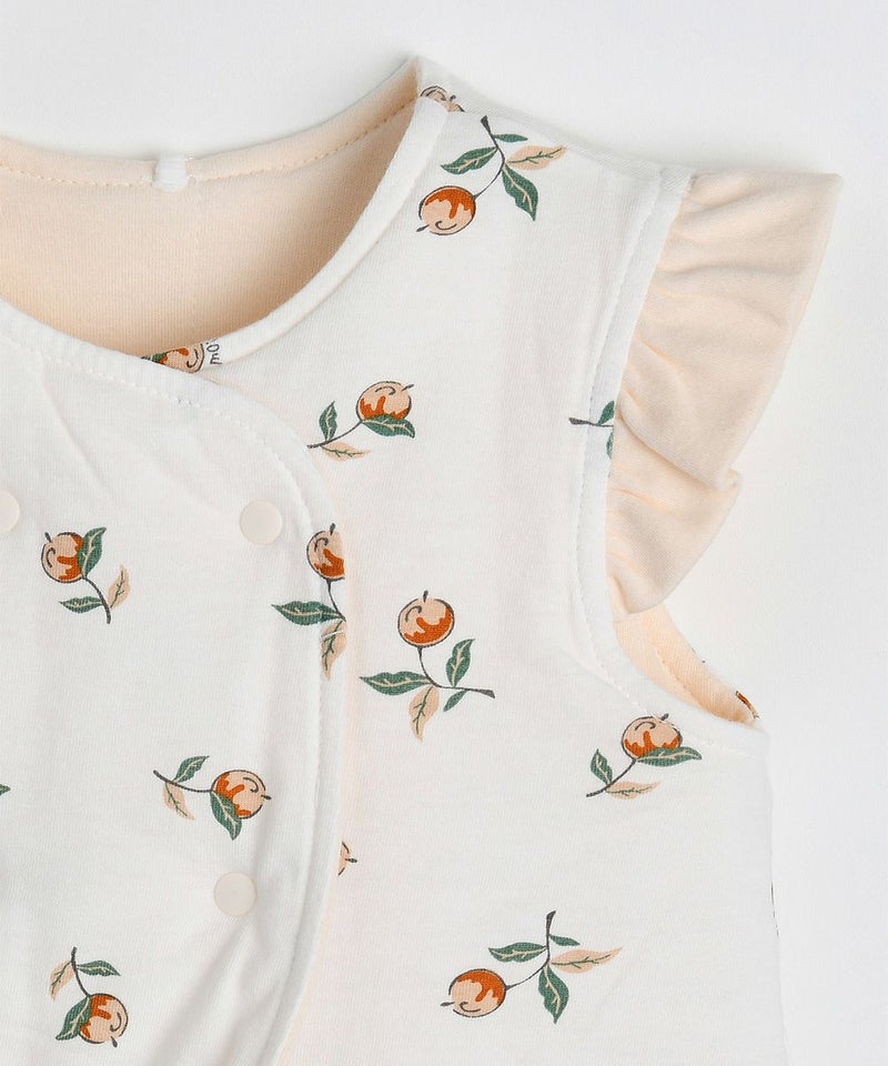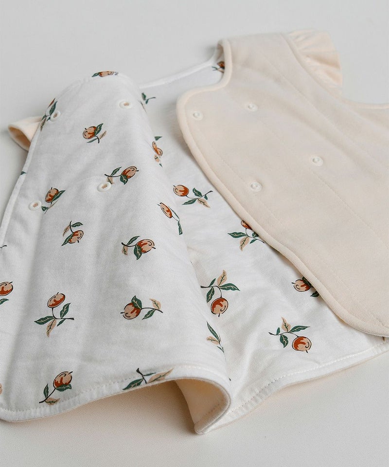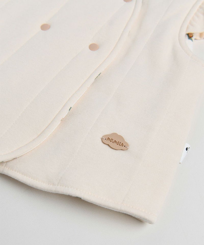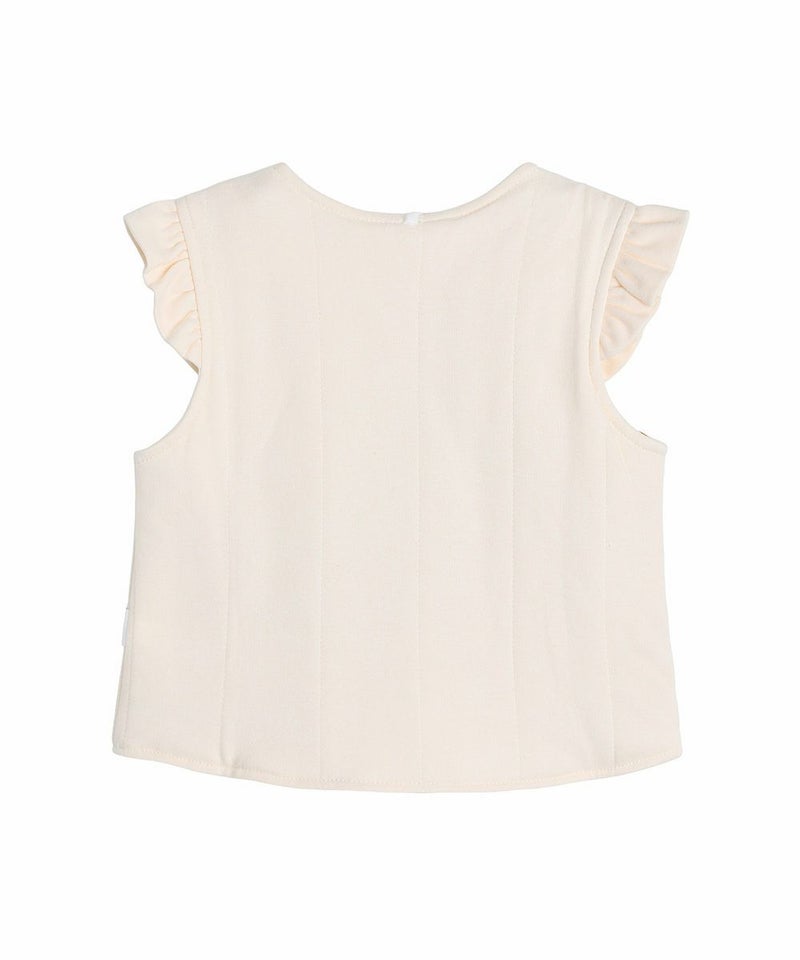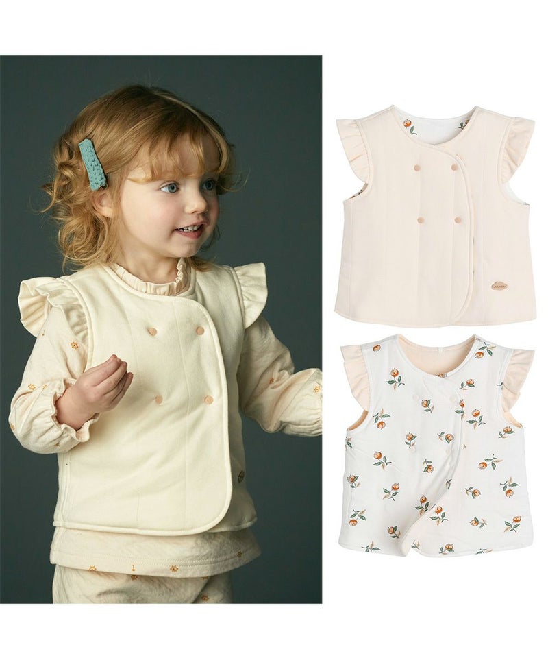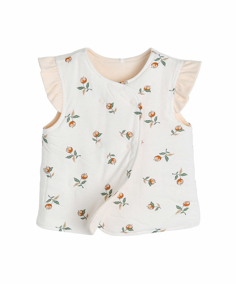 果実モチーフのリバーシブルで着用できるルームベスト。肩のフリル、ダブルボタンがおしゃれなアイテム。ガーネットシリーズとのコーディネートがおすすめです。