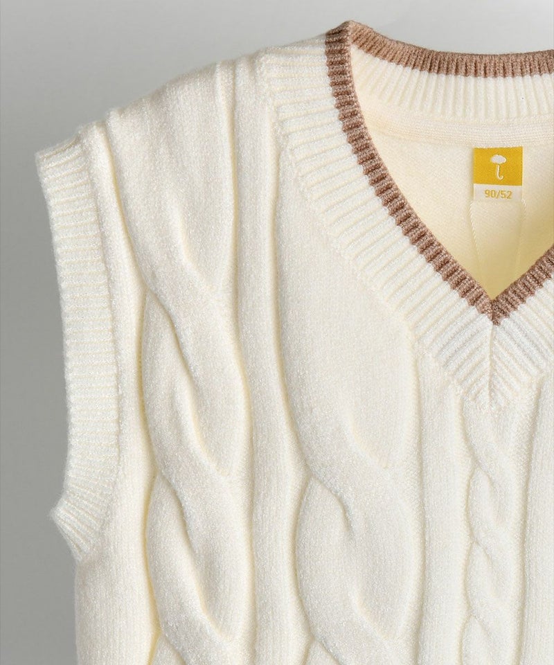 ソフトな肌触りのニットベスト。首元のカラー配色がポイントで、デイリーコーデのようなカジュアルルックにも、おでかけコーデのような端正ルックにもコーディネートできるアイテムです。