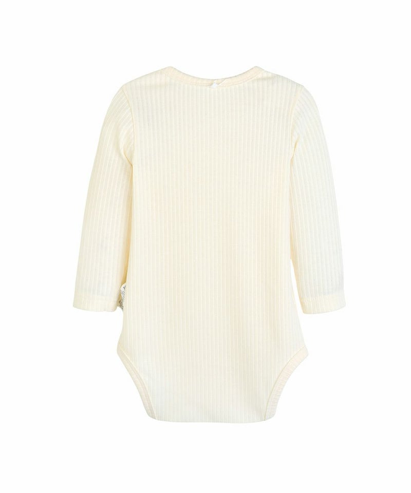 柔らかく伸びのよい素材を使用した長袖ボディスーツ。ワントーンのシンプルなデザインに胸元にさりげなくワッペンでブランドロゴをプラス、肩と股下がスナップボタンで大きく開くのでオムツ替えやお着替えも簡単です。大事なお子さまの普段使いに適したアイテムです。