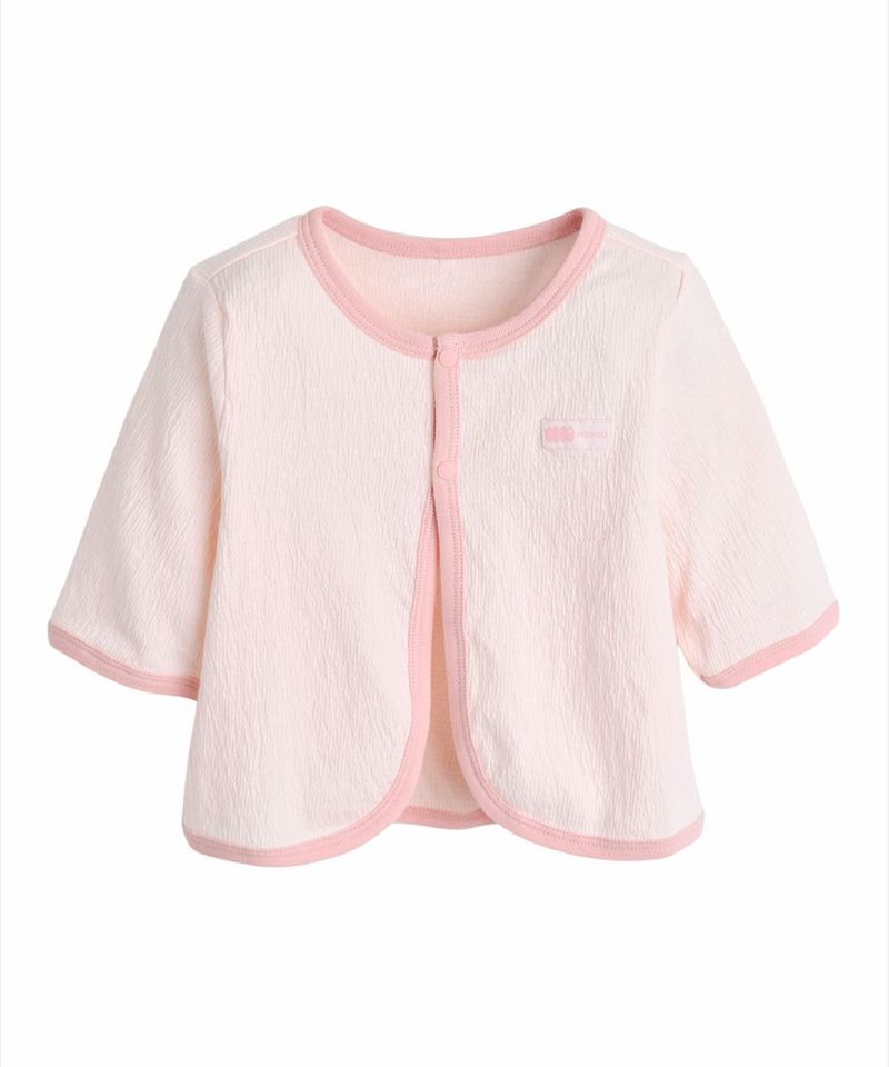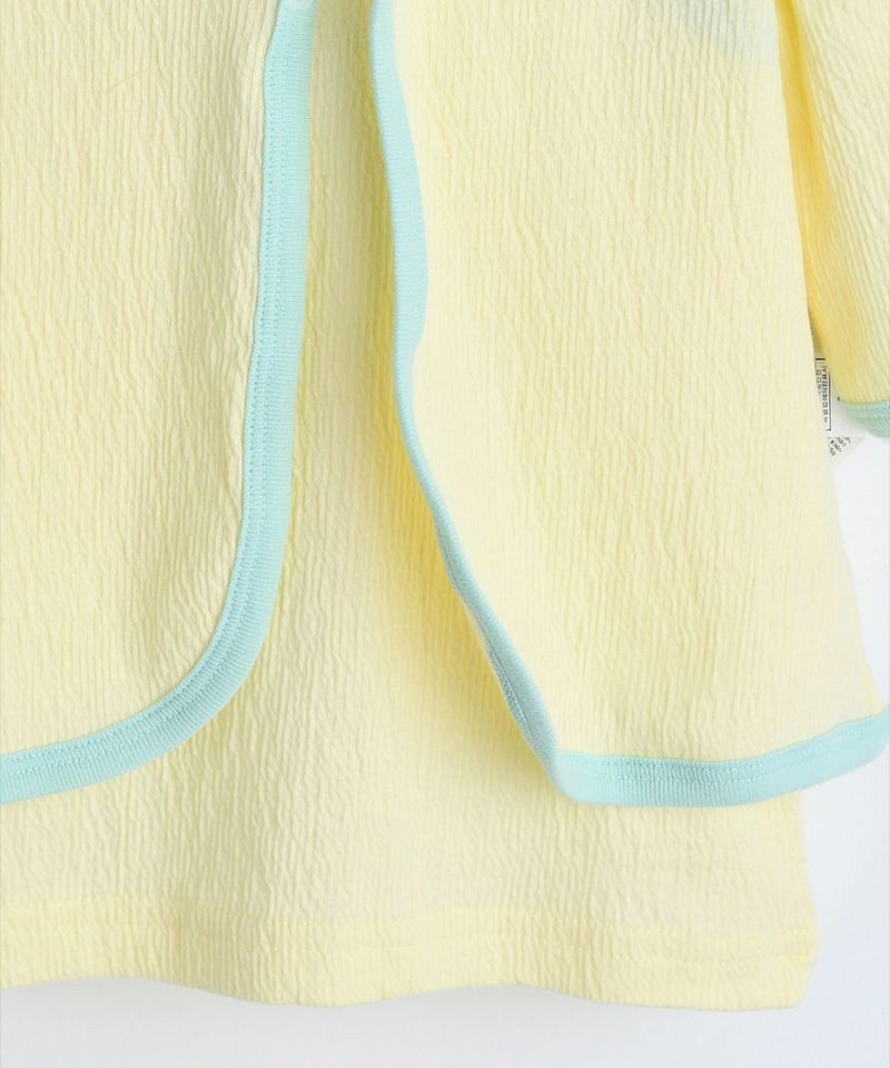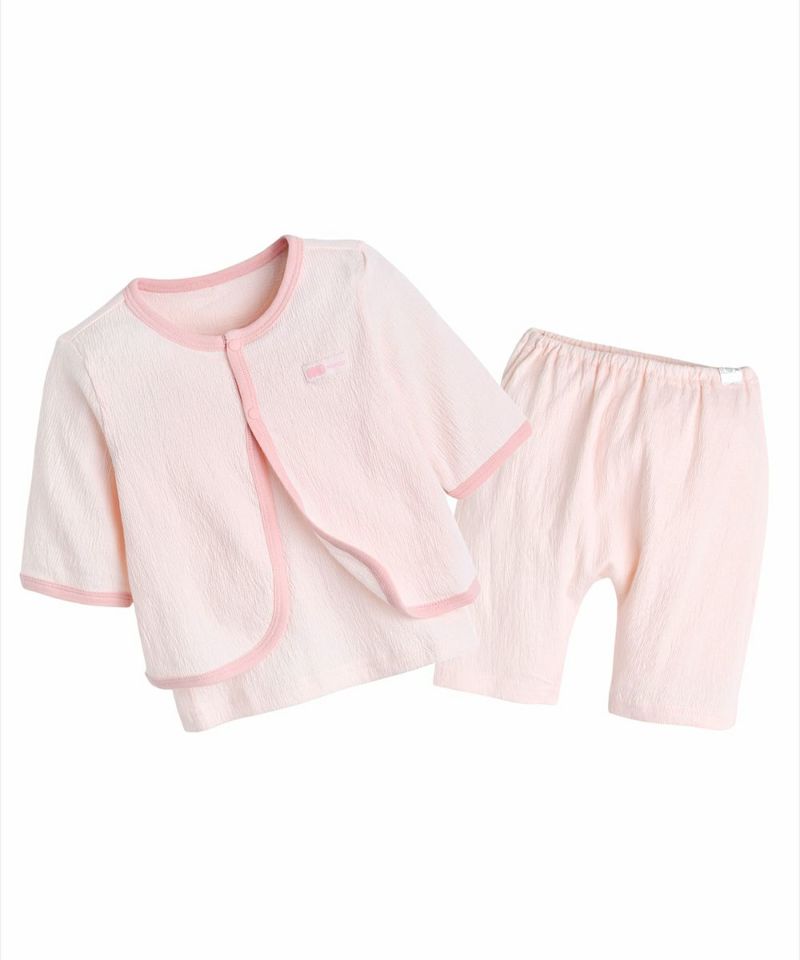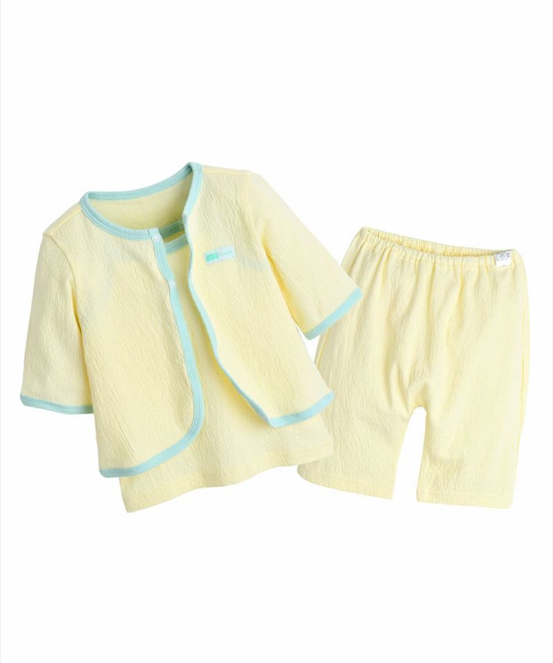 お得な3点セット。キャミソール、半端丈パンツ、季節の変化に合わせて使える同生地の七分袖カーディガンも付いています。伸縮性に優れたレーヨン混生地を使用し、カラフルなパイピングで遊び心のあるデザイン。ベビーギフトとしてもおすすめです。