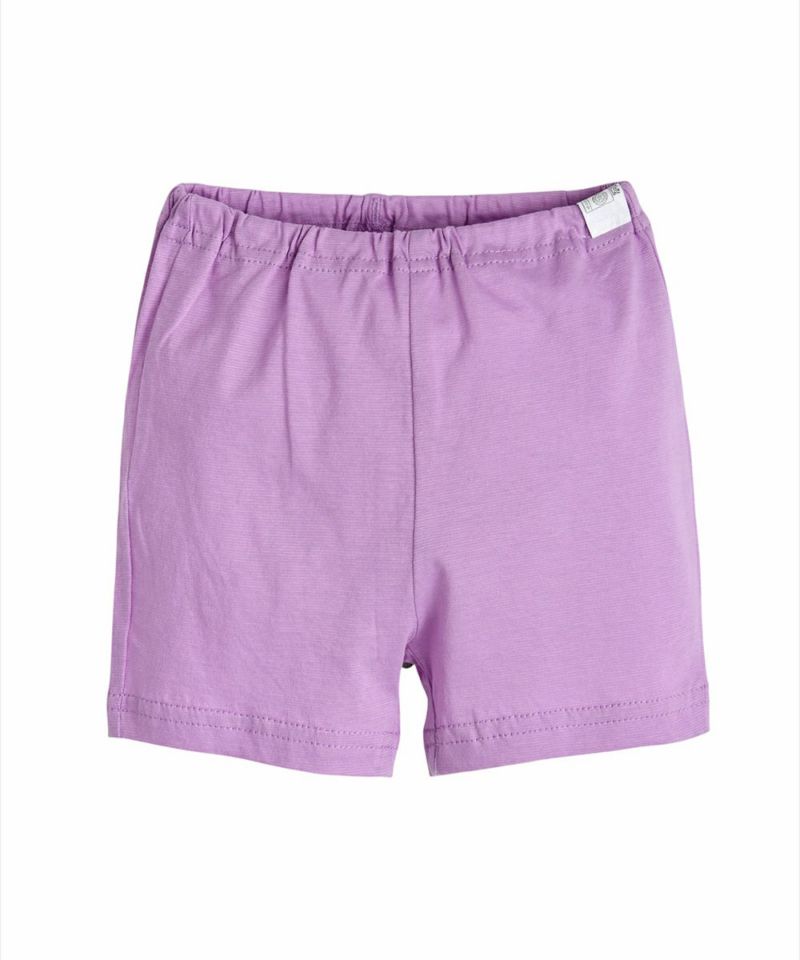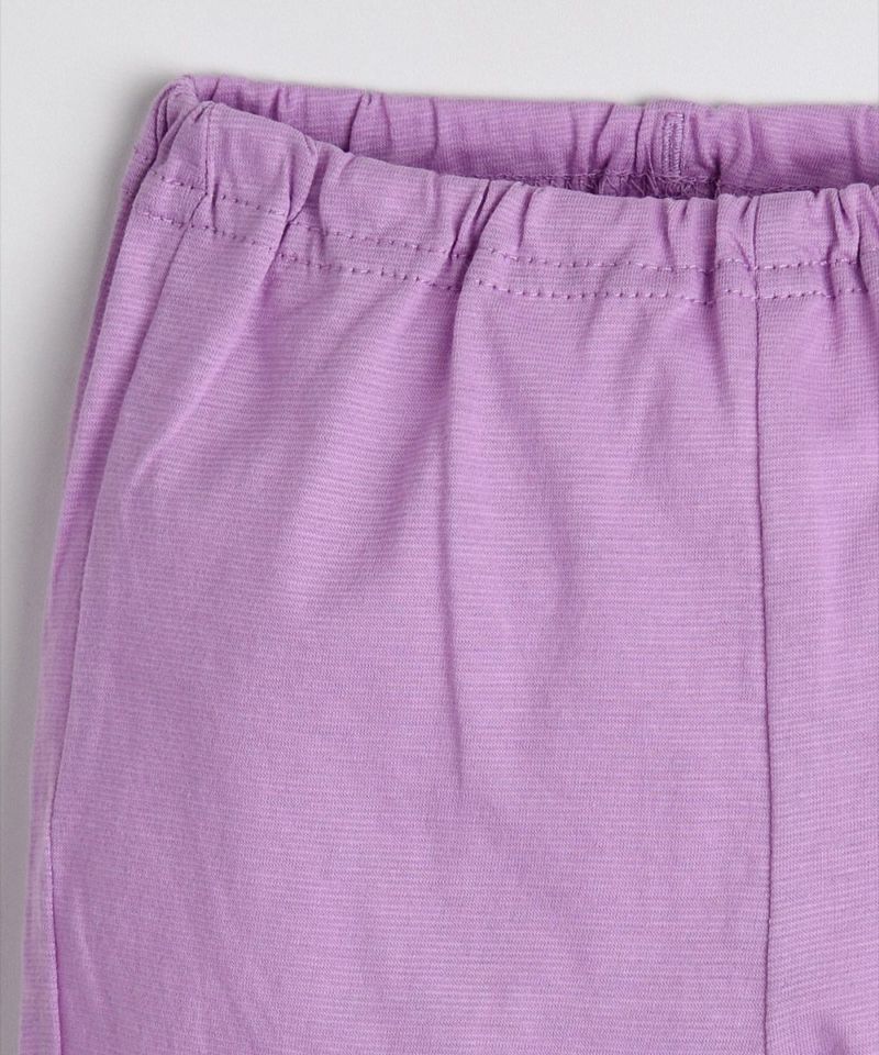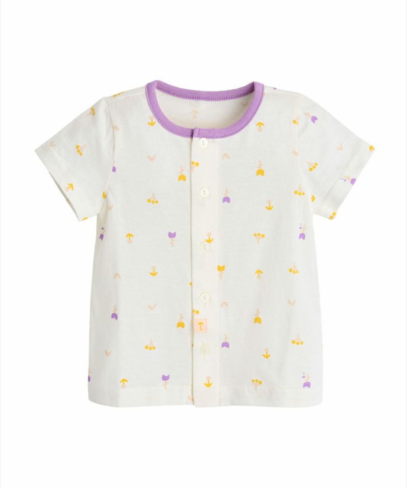 コットン100%の半袖ルームウェア。クリームカラーのベースにパープルとイエローのユニークな花柄がアクセントになっています。ベビーギフトとしてもおすすめです。