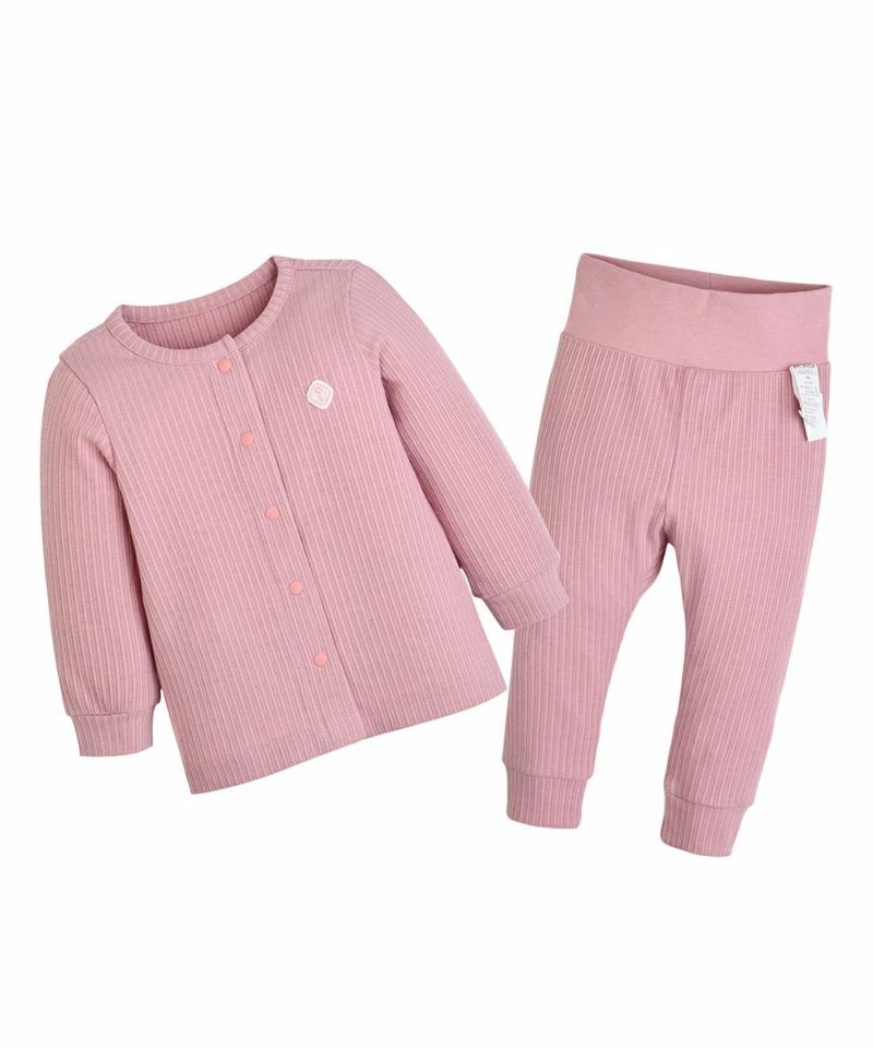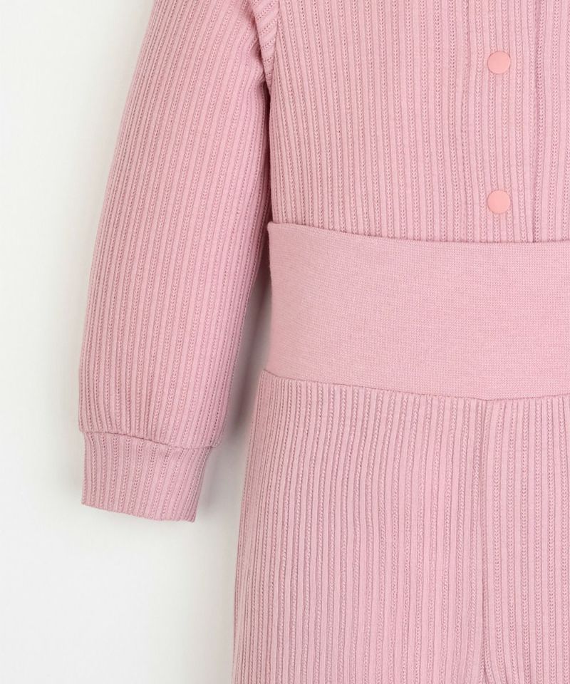 【ルームウェア】ピンクカラーアイレット長袖トップス&パンツ
