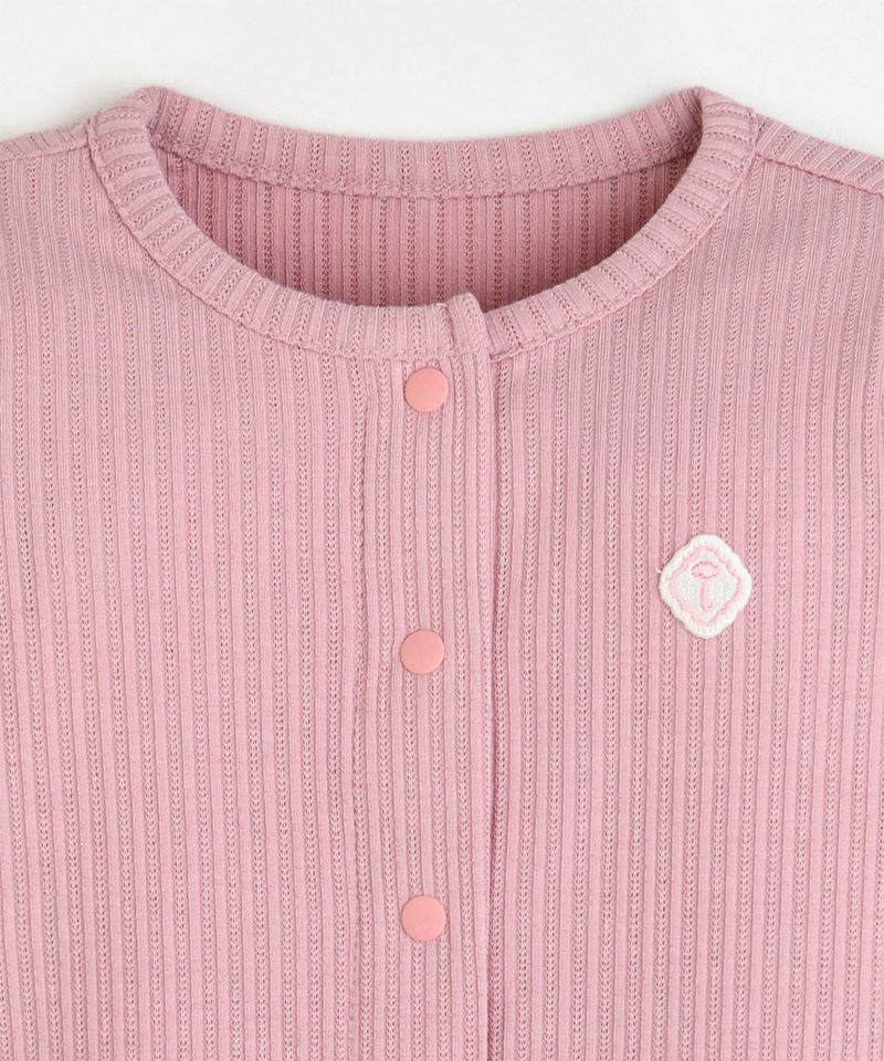 アイレット生地を使用し、動きやすく肌を優しく包み込んでくれるナチュラルフィットの長袖トップスとロングパンツのルームウェア。さりげない胸元のmoimolnマークの刺繍パッチ付きで、お腹の冷えを守ってくれる腹巻パンツなのもうれしいポイント。スナップボタンで脱着も簡単、サイズによってボタン位置のデザインが異なります。ルームウエア(M253NNN03P)とお揃いコーデもおすすめです。