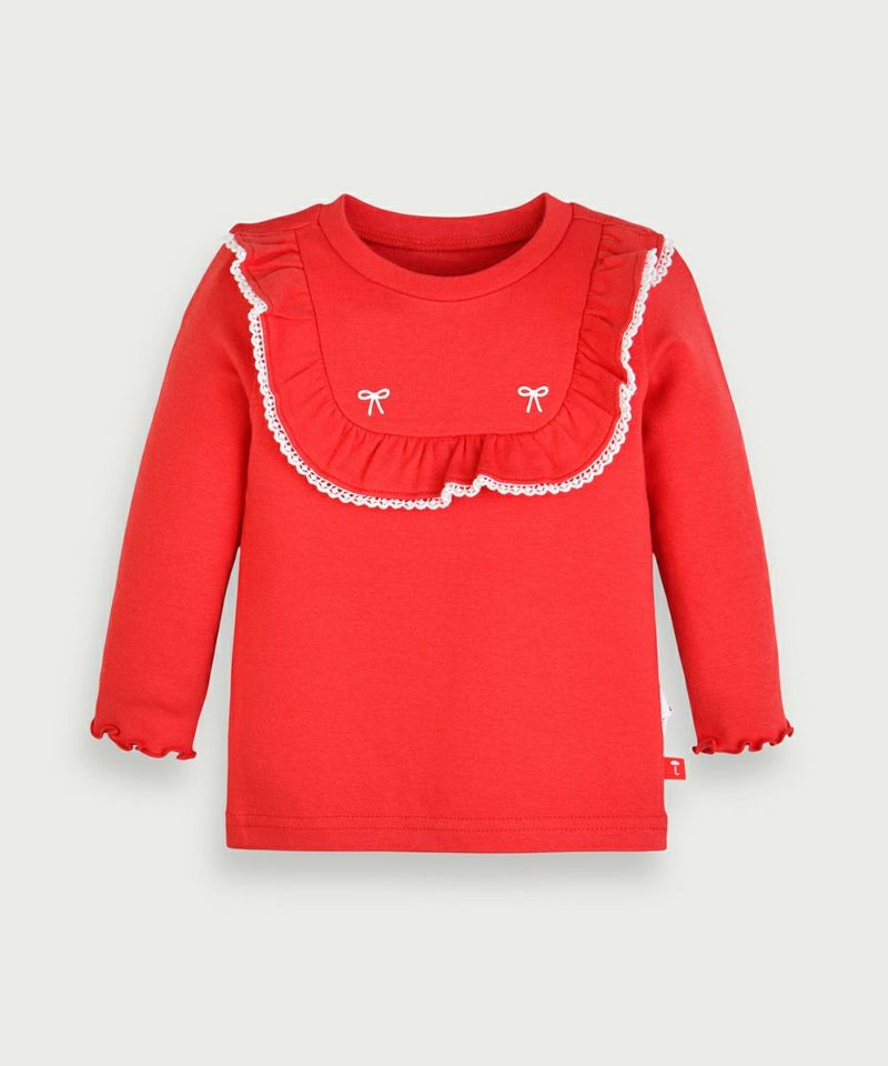 【ルームウェア】レッドフリル長袖トップス&パンツ