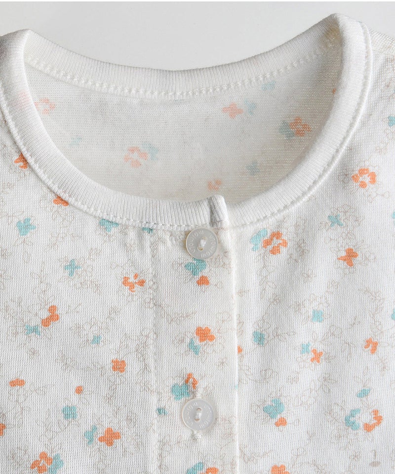 ※80サイズ:ボタン前全開き、90-110サイズ:肩2つボタン開き、120サイズ:ボタン無し。