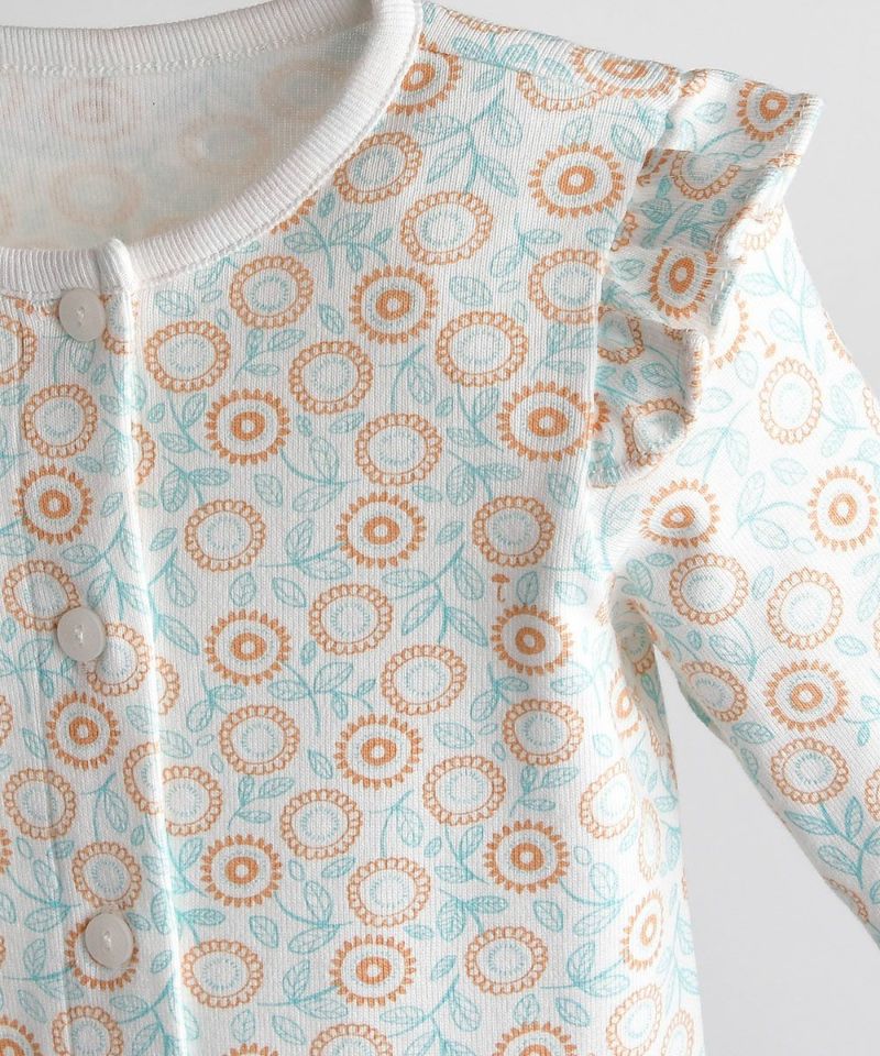 パステルの総花柄に肩のフリルで女の子らしいポイントを加えたルームウェアです。