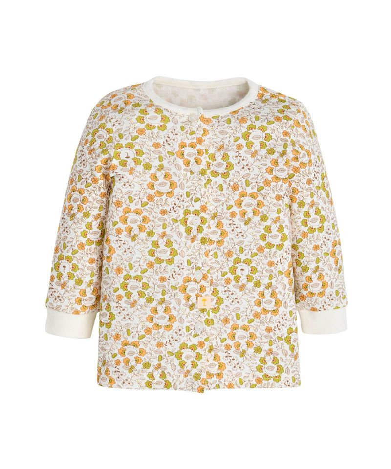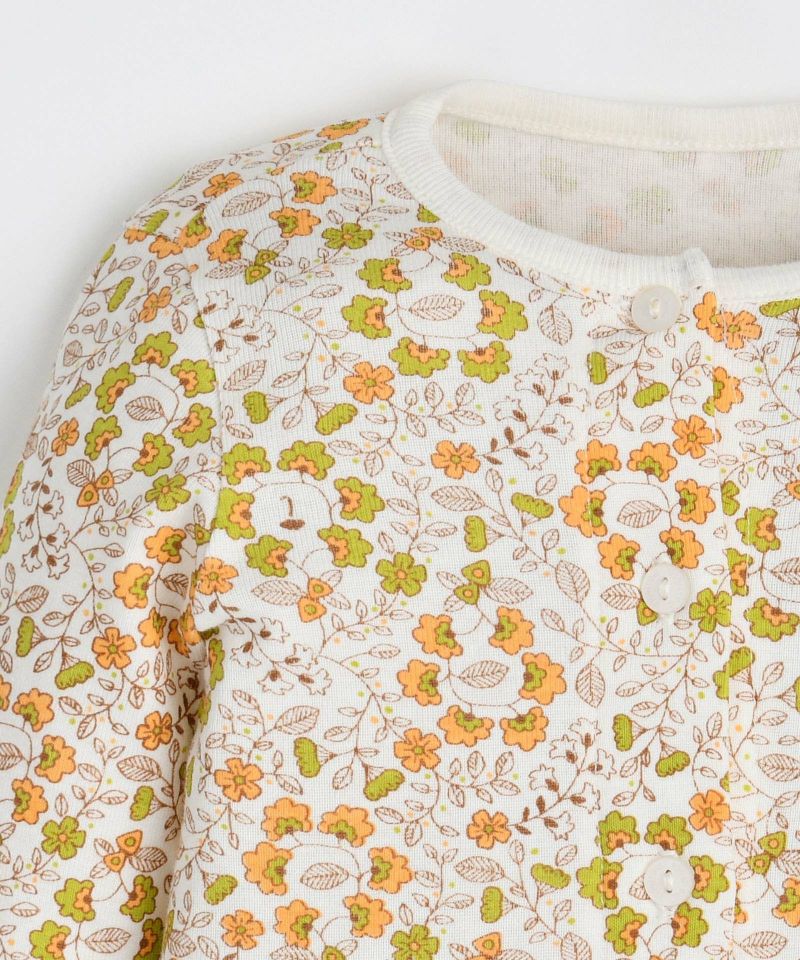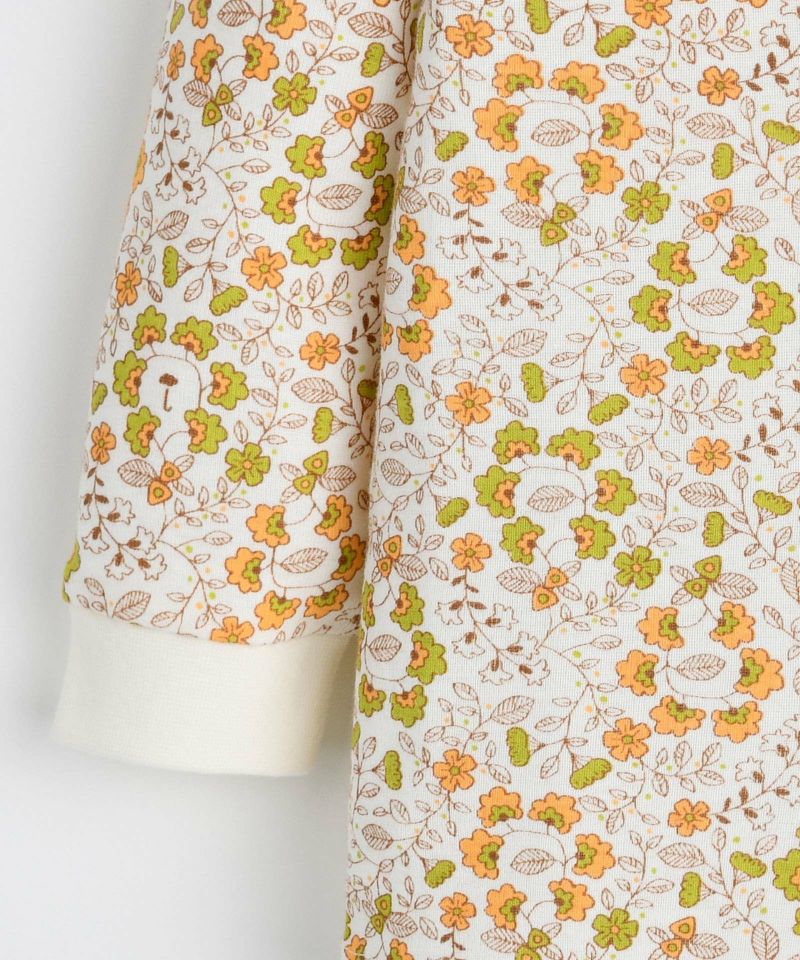 雰囲気のある花柄に袖と裾の配色がすっきりとした印象を与えるルームウェアです。