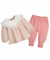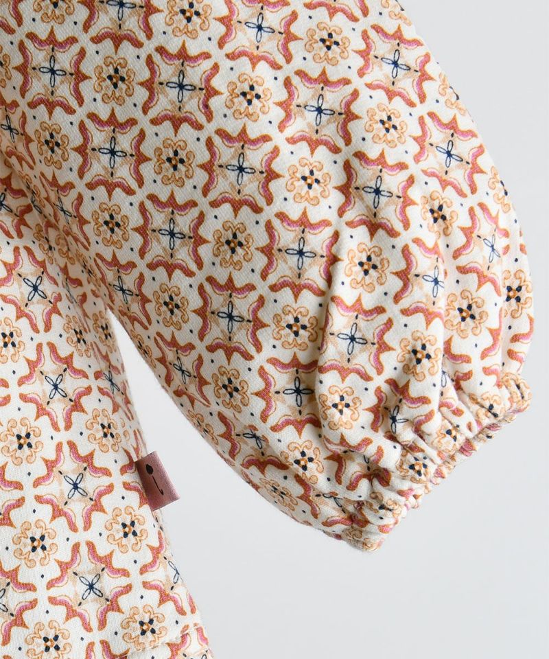 幾何学プリントのAライントップスのセットアップ。ユニークな形のレースの襟が女の子らしさをアップしてくれるアイテムです。